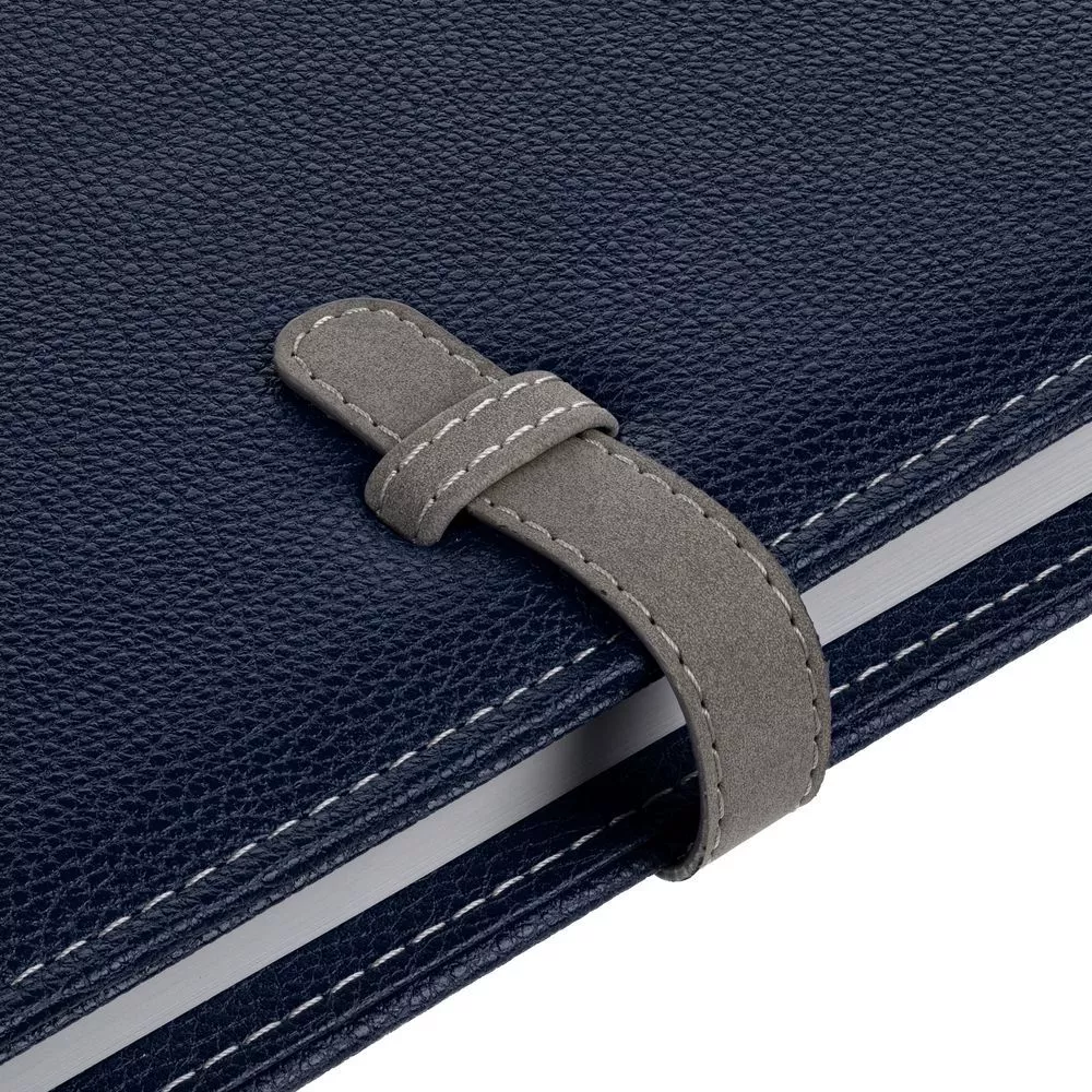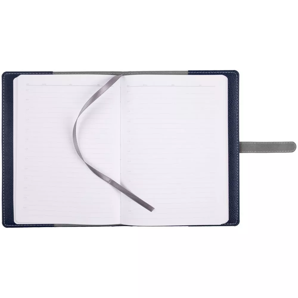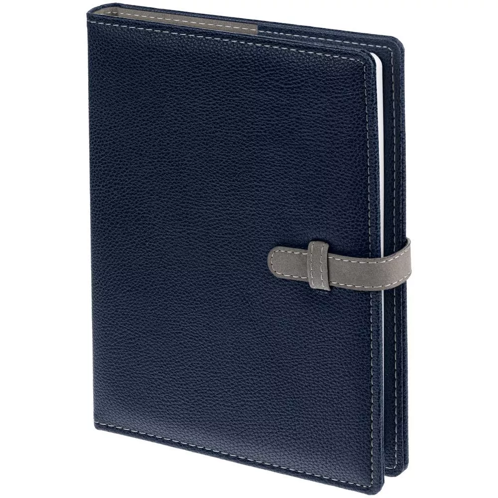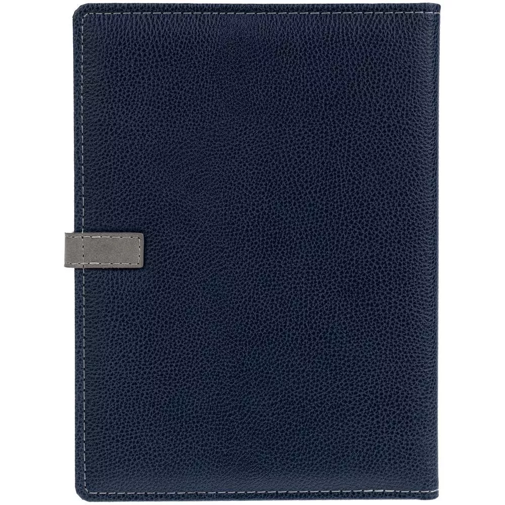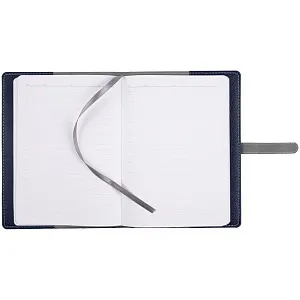 Ежедневник в мягкой суперобложке, выполнен из материала La Fite, синий, дополнен ляссе белого цвета.