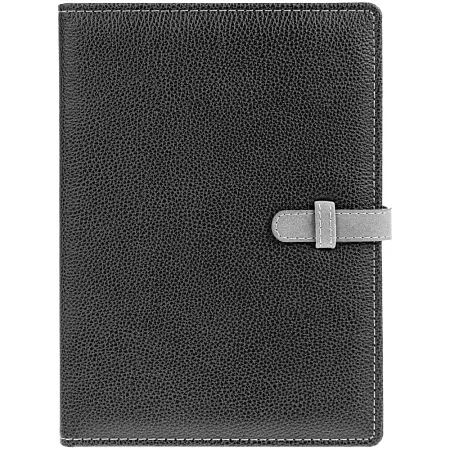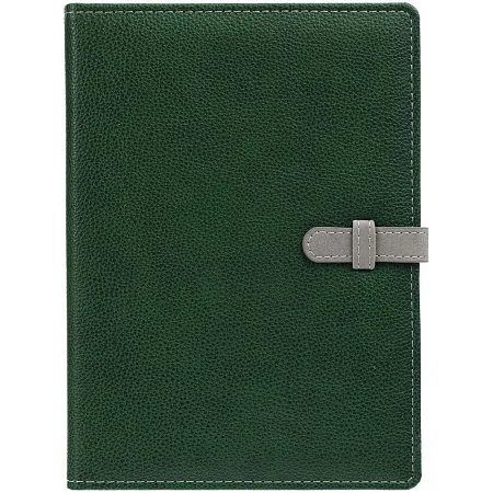 Изящный ежедневник в съемной суперобложке из искусственной кожи с хлястиком.