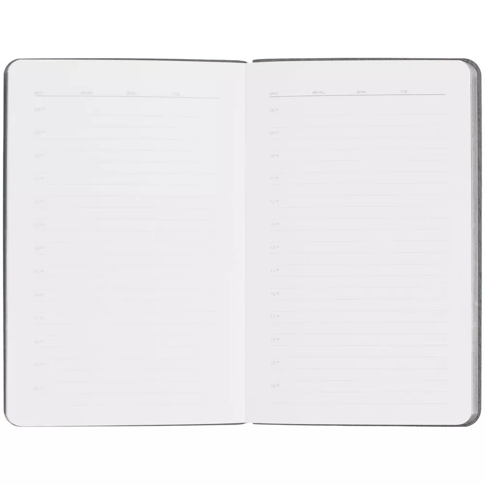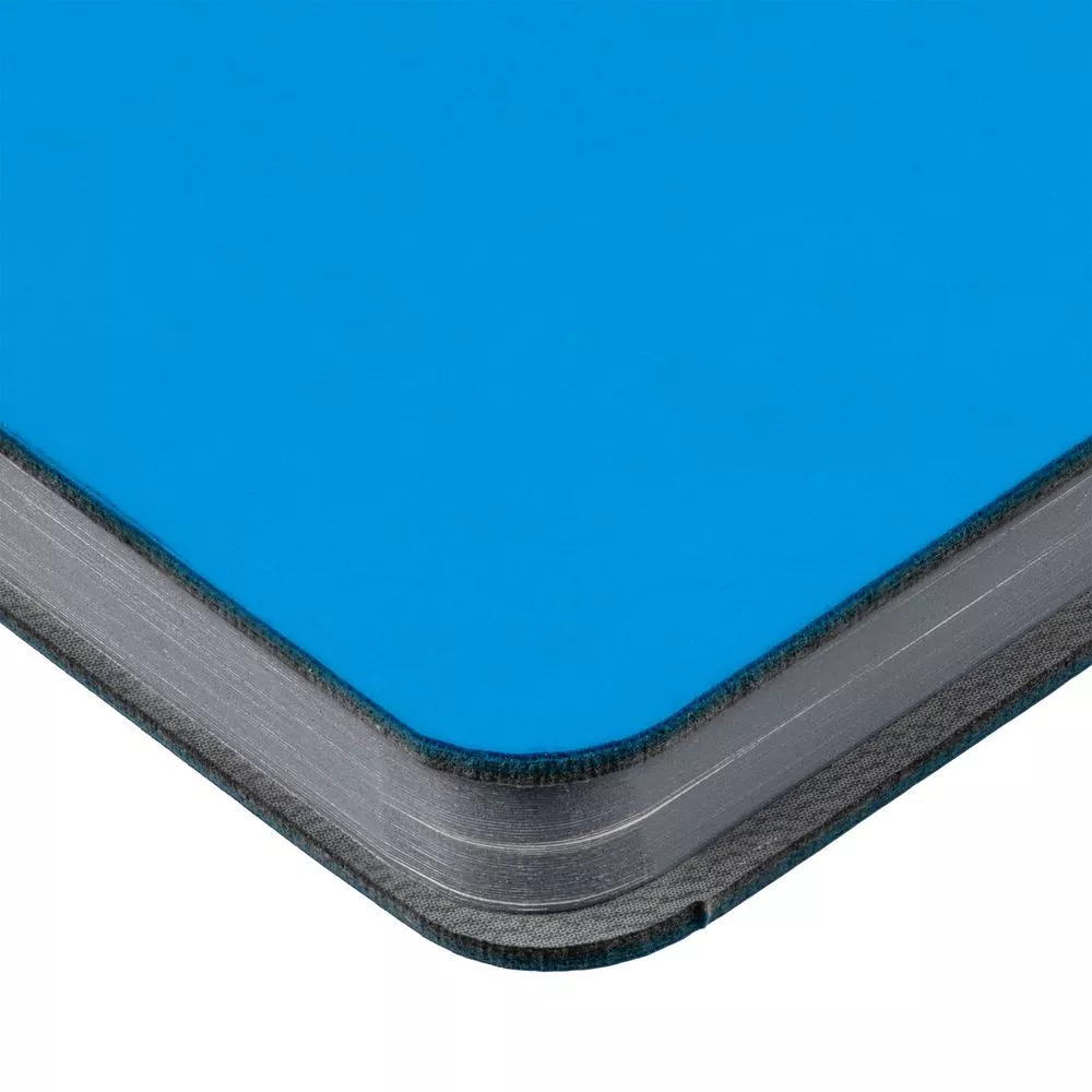 Ежедневник с гибкой обложкой выполнен из материала Soft Touch Pearl, голубой JJ и серого Latte (внутренняя часть обложки).