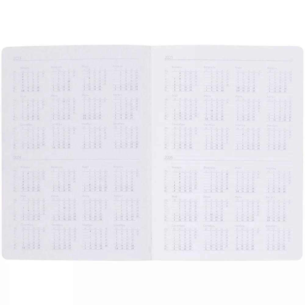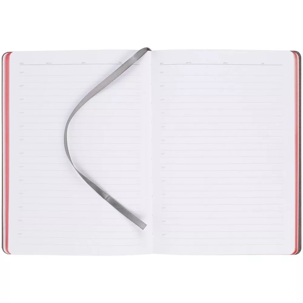 Ежедневник с твердой обложкой, выполнен из материалов Soft Touch, фиолетовый UU и La Fite, серый СС. Ляссе темно-серого цвета.