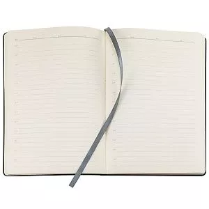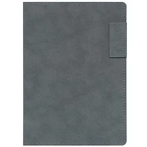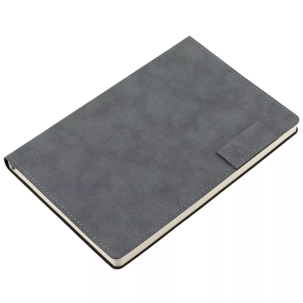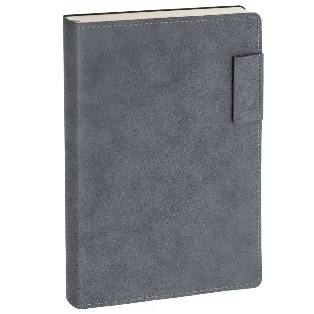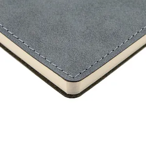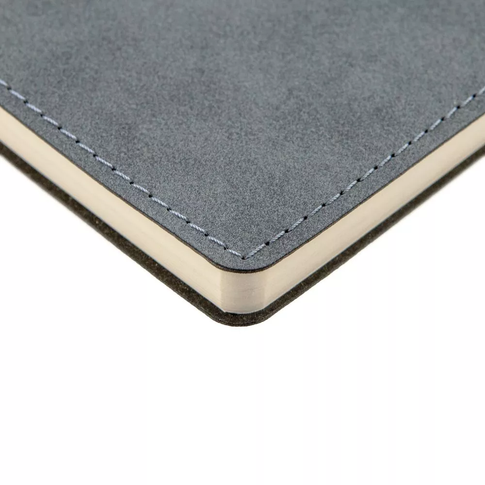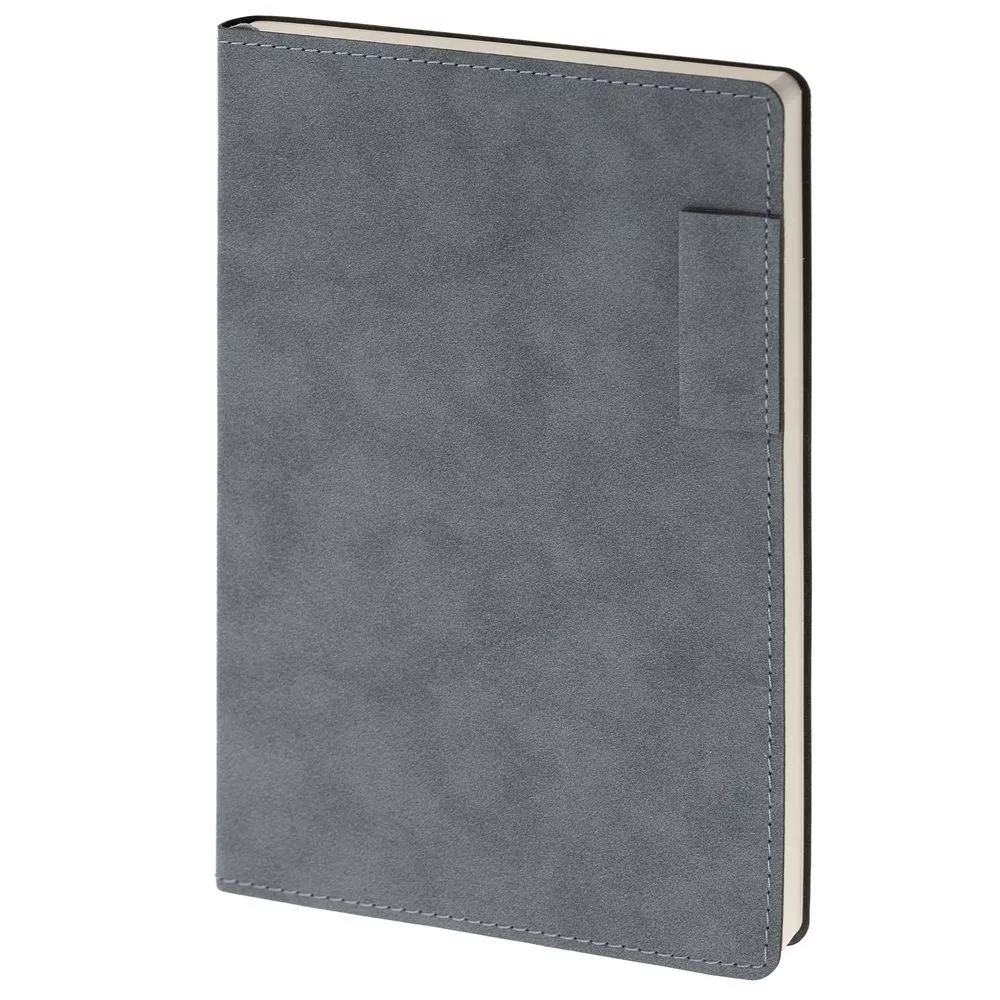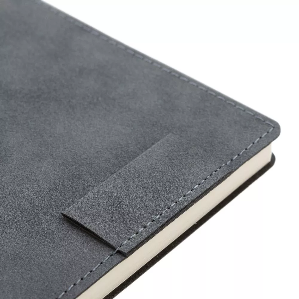 Ежедневник с гибкой обложкой, выполнен из материала Nubuck, темно-серый ЕЕ, дополнен петлей-лейблом для ручки и ляссе в цвет материала.