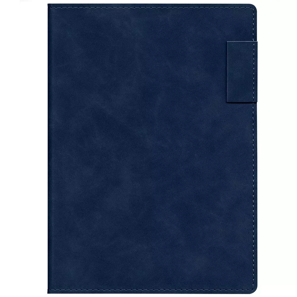 Ежедневник 17х24 см, с гибкой обложкой, выполнен из материала Nubuck Touch, темно-синий ХХ, дополнен петлей-лейблом для ручки и двойным ляссе в цвет материала.