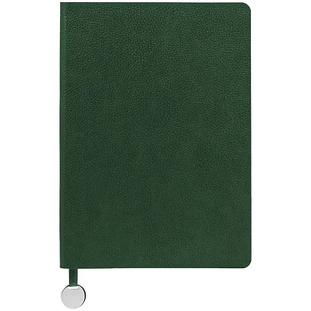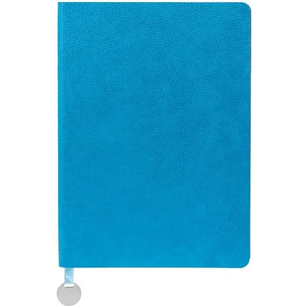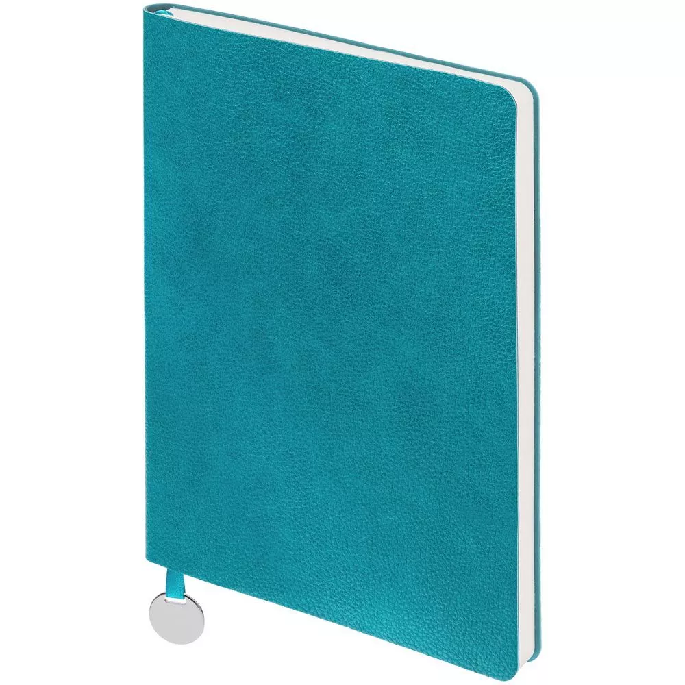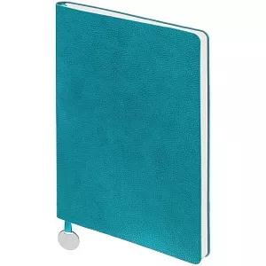 Ежедневник с гибкой обложкой, выполнен из материал La Fite, цвет морской волны II, дополнен ляссе в цвет обложки с металлическим шильдом.