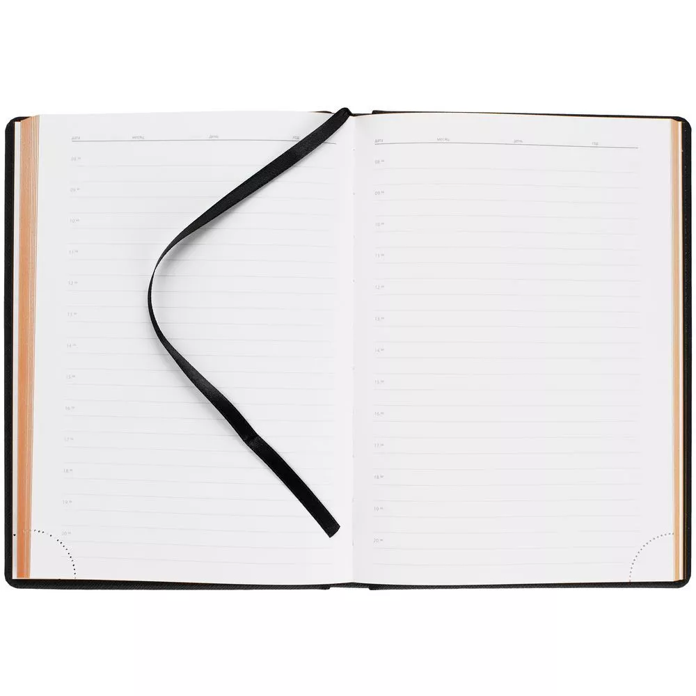 Ежедневник с карманом шириной 10 см из резинки, в котором удобно разместить мобильный телефон или визитки для переговоров.