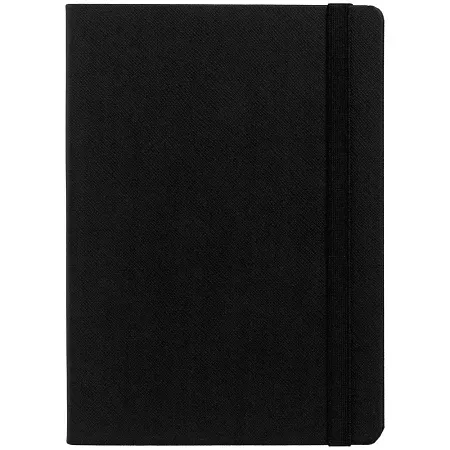 Ежедневник с твердой обложкой выполнен из материала Nice Touch, черный АА, и дополнен резинкой шириной 1 см, капталом и ляссе черного цвета.