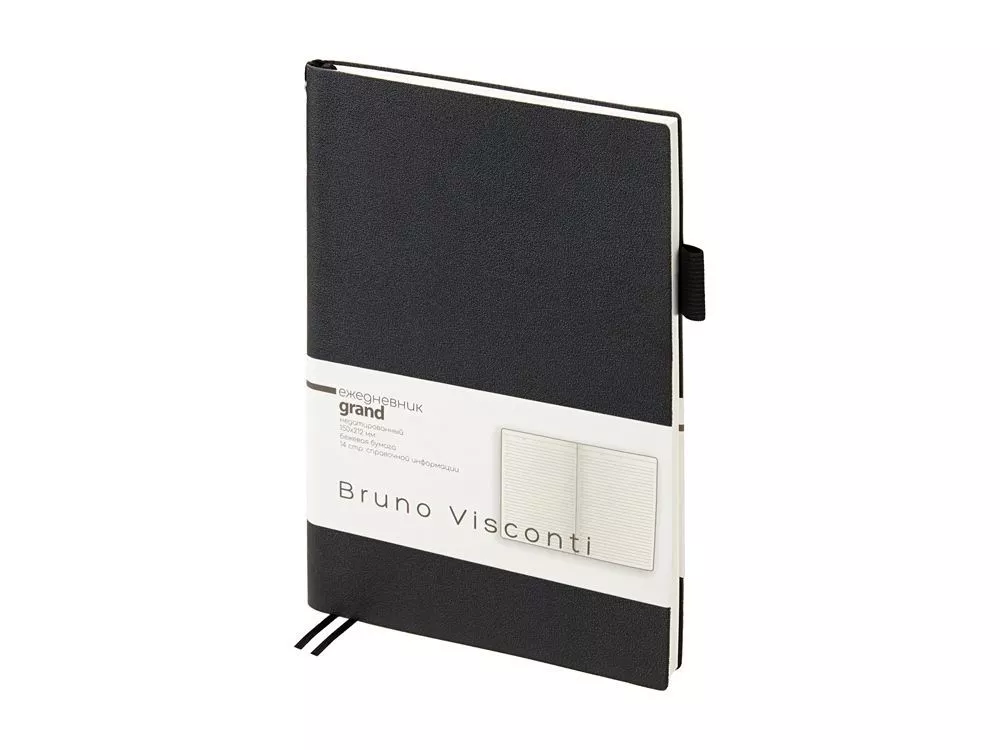 Мягкая, гибкая обложка с необычной фактурой, приятной на ощупь, петля под ручку, двойное ляссе, стандартный формат А5 — все это ежедневник Grand. А благодаря оригинальному способу фиксации ляссе на корешке ежедневник получил новое звучание. Такая фишка придется по вкусу всем, кто придает большое значение деталям. Недатированный блок изготовлен из бежевой бумаги плотностью 80 г/кв.м. Ежедневник имеет справочную информацию на 14 страницах. Тиснение (Блинт) на данный товар осуществляется бесплатно. Оплачивается только настройка оборудования в размере 6200 рублей на весь тираж.