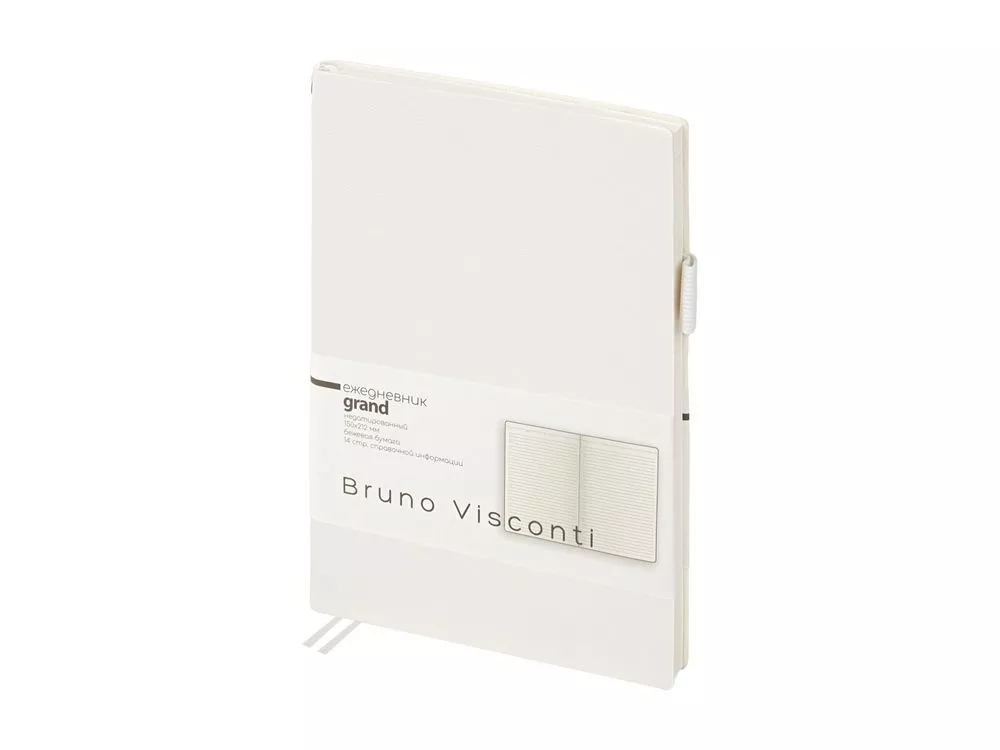 Мягкая, гибкая обложка с необычной фактурой, приятной на ощупь, петля под ручку, двойное ляссе, стандартный формат А5 — все это ежедневник Grand. А благодаря оригинальному способу фиксации ляссе на корешке ежедневник получил новое звучание. Такая фишка придется по вкусу всем, кто придает большое значение деталям. Недатированный блок изготовлен из бежевой бумаги плотностью 80 г/кв.м. Ежедневник имеет справочную информацию на 14 страницах.