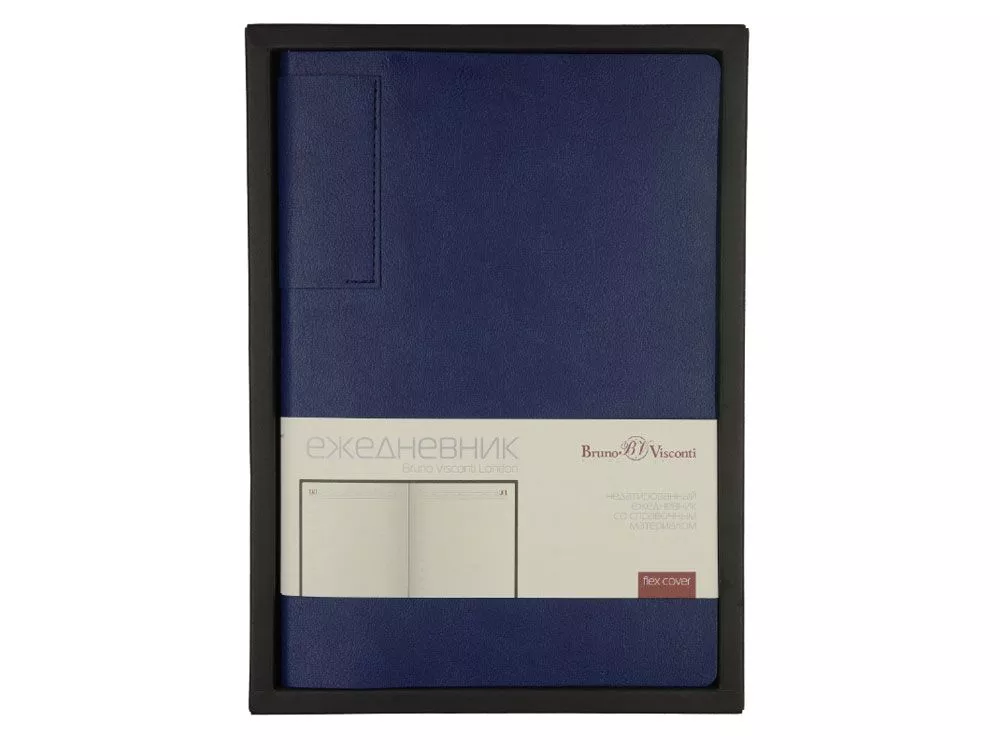 Классический ежедневник из коллекции London формата А5, недатированный. Лаконичная модель в ярком исполнении: гибкая обложка синего цвета с контрастной или в цвет обложки нашивкой. Выполнен из качественной и прочной искусственной кожи, крепление внутреннего блока - книжный переплет, закладка- ляссе. Углы обложки скруглены. Внутри есть страница для личных данных, а также блок справочной информации (часовые пояса, аэропорты, телефонные коды, размеры одежды, автомобильные коды, римские цифры, расход калорий, формат бумаги, единицы измерения, штрихкоды, распад алкоголя в крови, города миллионники РФ и СНГ, национальные праздники, термины международной торговли, температура, скорость, давление, буквенные коды стран, энергетическая ценность продуктов, страны мира).