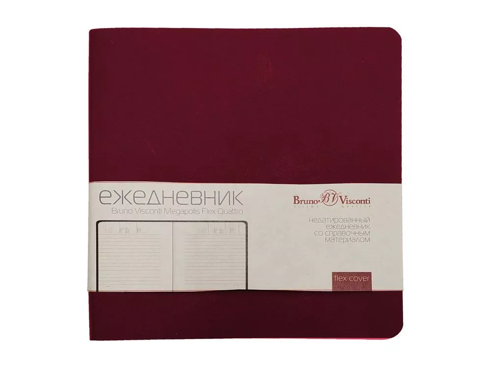 Оригинальный формат ежедневника Megapolis Flex Quattro никого не оставляет равнодушным. Большинство покупателей влюбляются в него с первого взгляда. Обложка выполнена из качественного, тактильно приятного искусственного материала, гибкая и не ломкая. Великолепная бежевая бумага плотностью 70 г/м и практичная линовка с расписанным временем для планирования дел. Этот ежедневник отлично поместится даже в маленькую сумку, а у всех, кто его увидит вызовет неподдельный восторг. Справочная информация на 19 страницах и телефонная книга на 28. Удобно, практично и, конечно же, стильно! Тиснение (Блинт) на данный товар осуществляется бесплатно. Оплачивается только настройка оборудования в размере 5500 рублей на весь тираж.