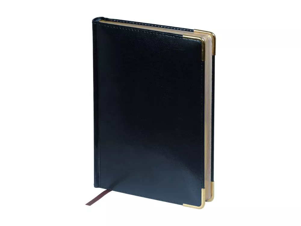 Ежедневник Persona – идеальный баланс между практичностью и статусностью. Великолепный переплетный материал прошит тонкой шелковой нитью в цвет обложки. Благородство в облик ежедневника добавляют металлические уголки и серебряный обрез. На контрасте с темным цветом обложки, блок состоит из листов бежевого цвета плотностью 70 г/кв.м. Раздел планирования дополнен справочной информацией на 14 страницах и телефонной книгой на 19 страницах. Вечная и никогда не стареющая классика! Тиснение (Блинт) на данный товар осуществляется бесплатно. Оплачивается только настройка оборудования в размере 5800 рублей на весь тираж.