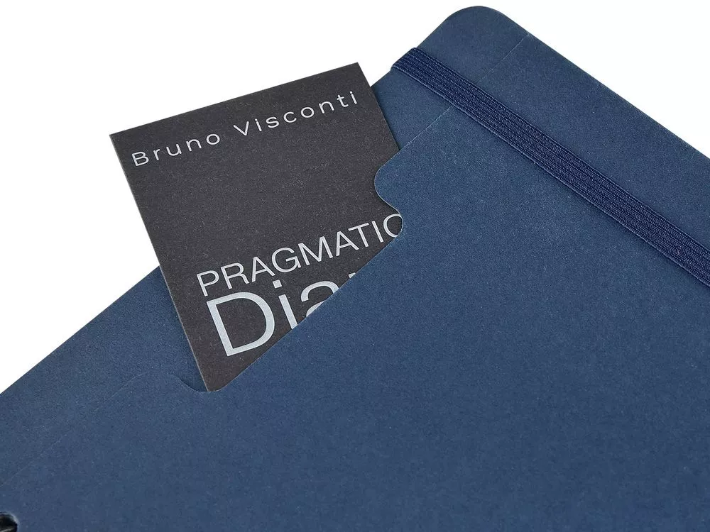 Сочетание удобства, простоты и яркого дизайнерского решения легли в основу создания недатированного ежедневника формата А5 Pragmatic от Bruno Visconti. Открытый гребень позволяет переворачивать страницы на 360 градусов, держать его открытым на столе, комфортно вести записи. Широкая резинка несет в себе как функциональное значение – не позволяет ежедневнику раскрываться и может служить закладкой, так и как элемент дизайнерского решения. Обложка из плотного картона, окрашенного в массе, гибкая по своей конструкции и имеет дополнительную функциональную возможность - хранить визитки, записки благодаря внешнему карману. Блок содержит 256 страниц, изготовленных из бежевой бумаги плотностью 80 г/кв.м Для современных деловых людей, ценящих время, комфорт и индивидуальность. Тиснение (Фольга) на данный товар осуществляется бесплатно. Оплачивается только настройка оборудования в размере 6200 рублей на весь тираж.
