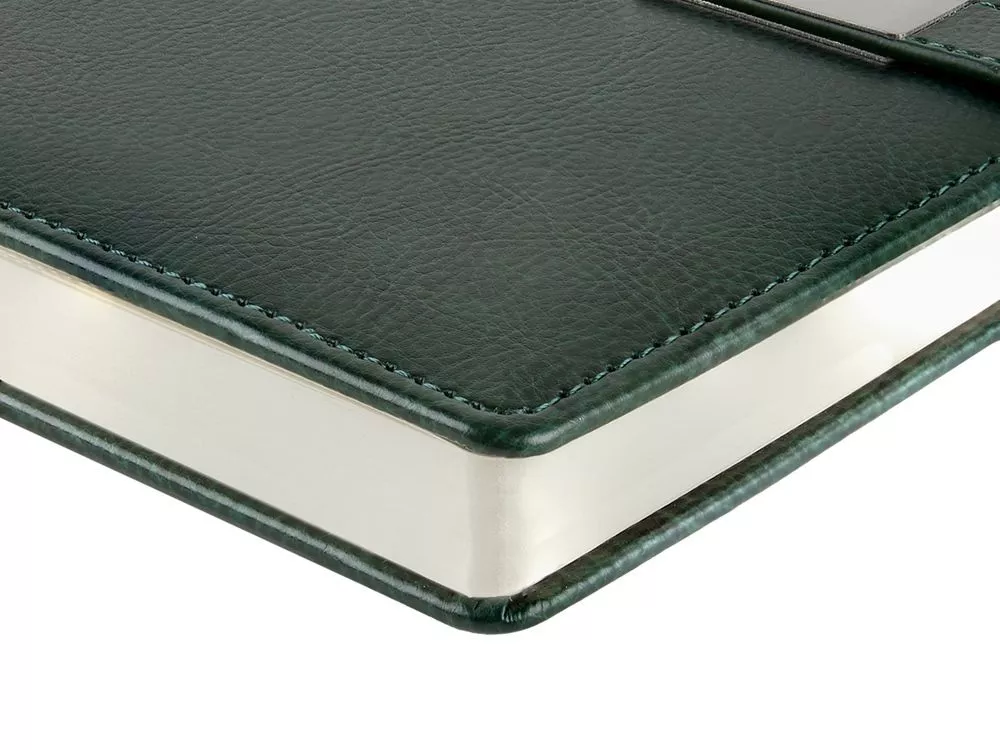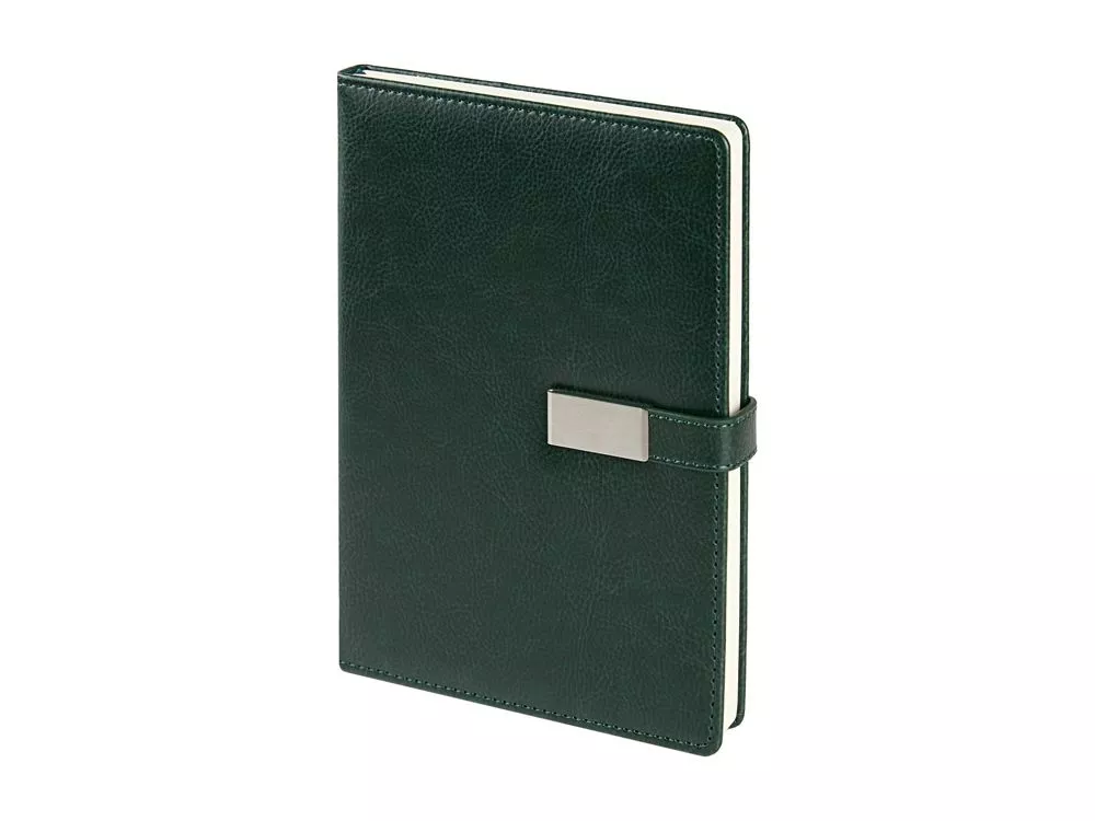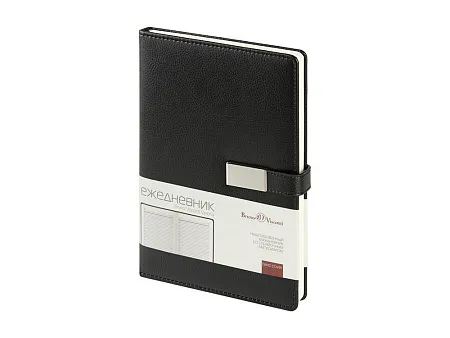 Казалось бы, утилитарный ежедневник Verona формата А5 со стандартным набором характеристик: петля для руки, ляссе в цвет обложки, скругленные углы блока и обложки. Но благодаря маленькой детали - металлическому хлястику на магните, ежедневник выглядит ярко и привлекательно. Ежедневник комфортно и приятно держать в руках благодаря поролонированной обложке из высококачественной искусственной кожи. Блок из 256 страниц ежедневника произведен из бежевой бумаги плотностью 80 г/кв.м, содержит помимо недатированных страниц для планирования рабочего времени еще и справочную информацию. Тиснение (Блинт) на данный товар осуществляется бесплатно. Оплачивается только настройка оборудования в размере 6200 рублей на весь тираж.