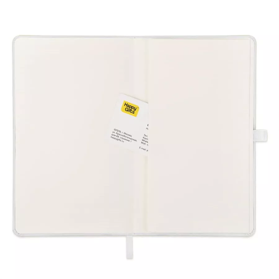 Цвет обложки белыйРазмер 130*210 мм, переплет твердыйБлок недатированный, nbsp;в линейкуСкругленные углы, двухцветная печатьБумага кремовая, плотность 70г м2Форзац нахзац кремовые256 страниц8 инфостраницШелковистая резинка, 12 ммЛяссе в цвет резинкиПетелька для ручкиУпаковка крафтовый сливбокс