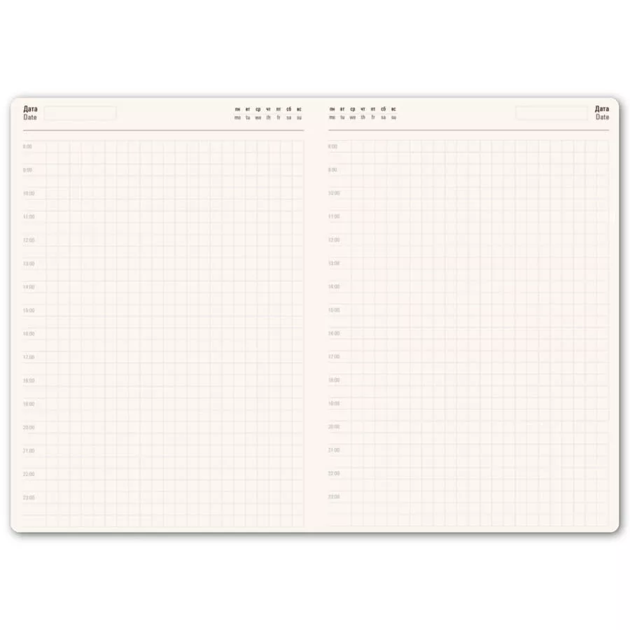 Цвет обложки, близкий к пантону 3597C Размер 140*200 мм Переплет мягкий Обложка термоактивный PU Velvet Блок недатированный, в клетку, скругленные углы Бумага кремовая, плотность 70 г м2 Форзац и нахцаз кремовые 256 страницы 8 инфостраниц Упаковка крафтовый сливбокс
