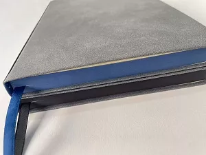 - Основной материал - практичный "велюр" серого цвета, контрастная (цветная) полоса из к/зама в корешке;
