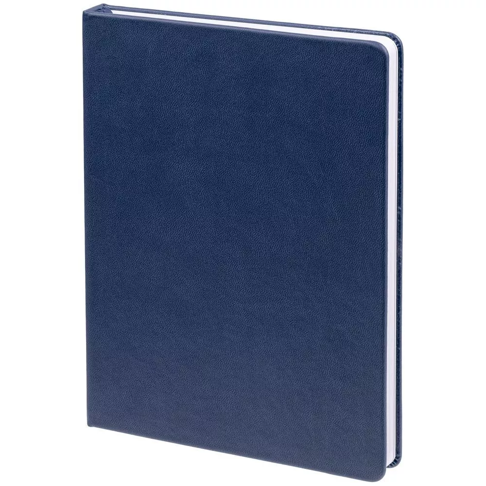 Ежедневник с твердой обложкой. Выполнен из материала Latte, темно-синий, дополнен ляссе в цвет обложки.