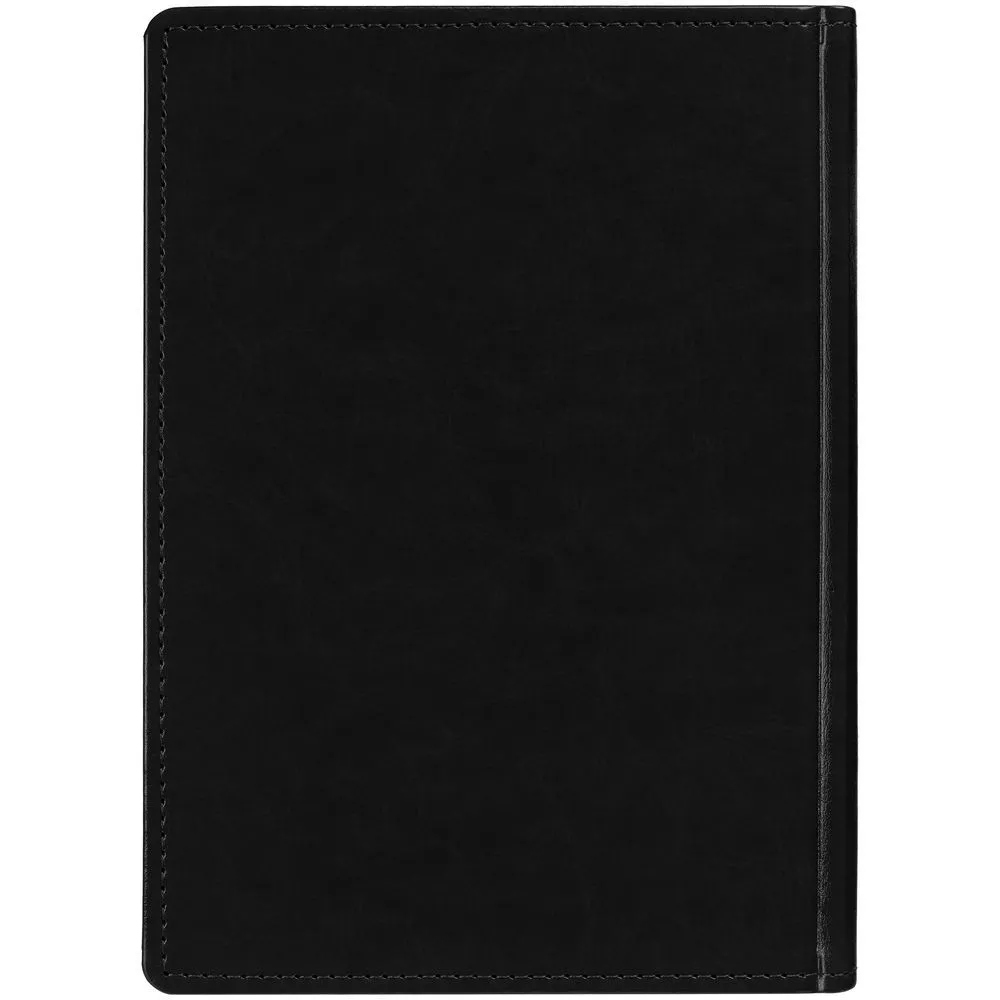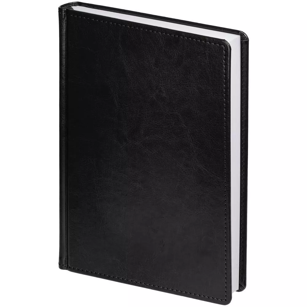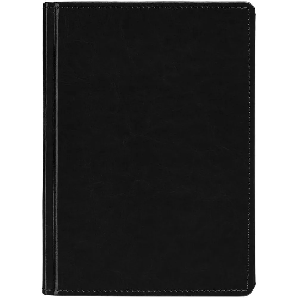 Ежедневник с твердой обложкой без поролона, выполнен из материала Nebraska, черный АА, дополнен ляссе и капталом в цвет обложки.