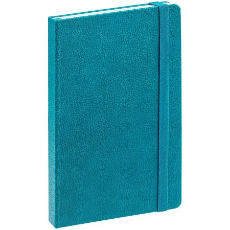Ежедневник с твердой обложкой, выполнен из материала LaFite, голубой JJ, дополнен резинкой и ляссе в цвет обложки.