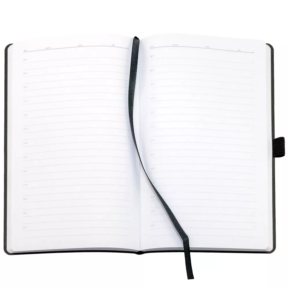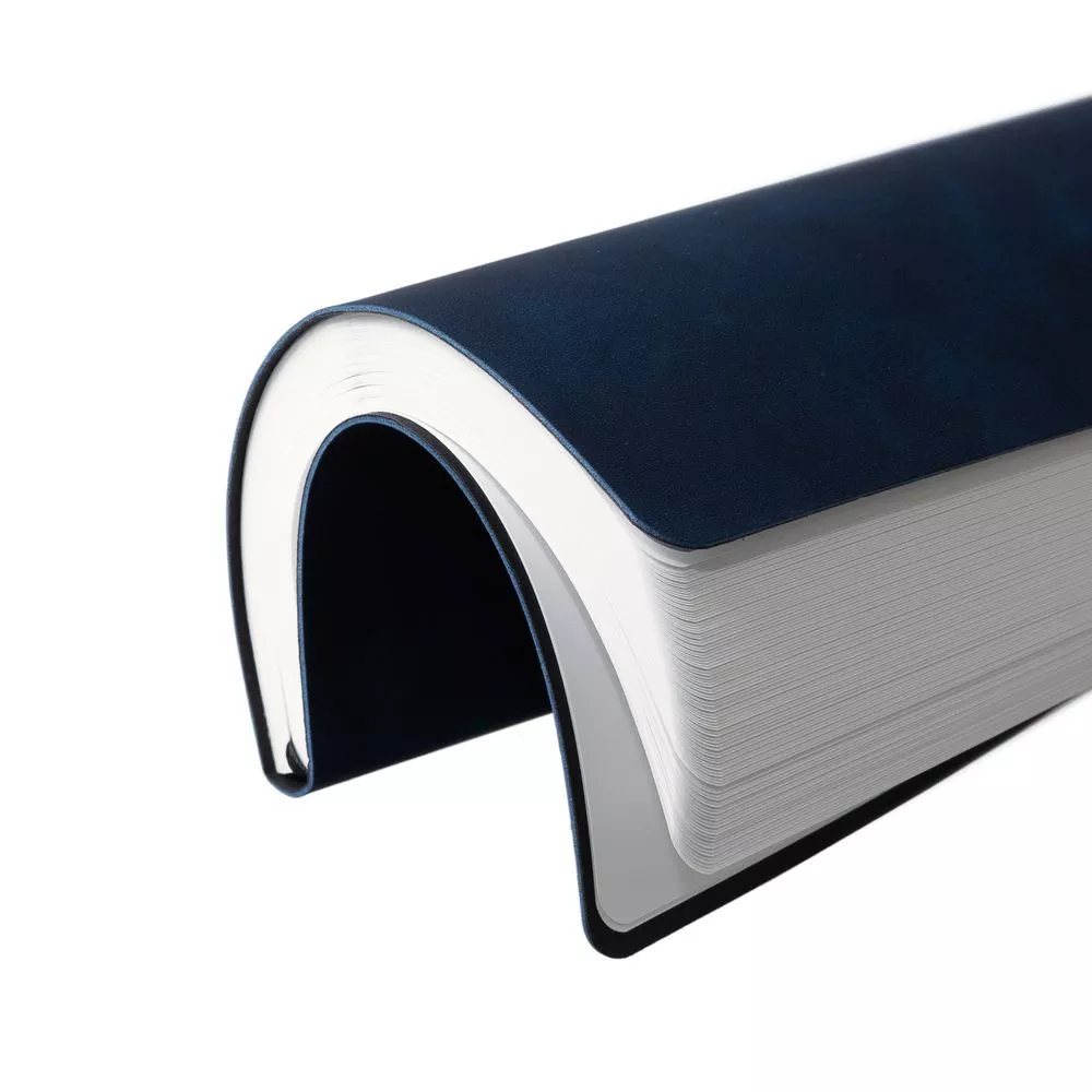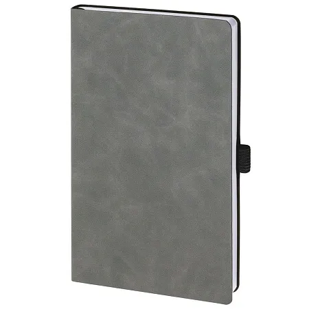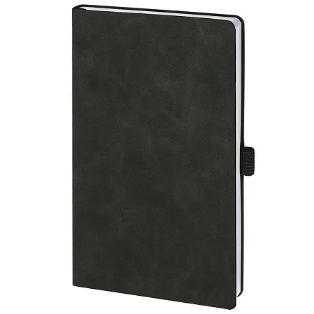 Ежедневник с гибкой обложкой, выполнен из материала Nubuck Touch, темно-синий XX, дополнен ляссе и петлей-резинкой для ручки черного цвета.