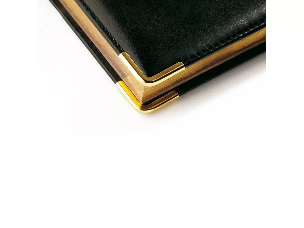 Полудатированный ежедневник Boss от бренда Bruno Visconti - это качественный корпоративный подарок по выгодной цене, произведенный специально под персонализацию. Представлен в универсальном формате А5 и состоит из 416 страниц. Классический деловой ежедневник линии Boss – образец элегантности. Гладкую тонкую фактуру экокожи подчеркивает декоративная строчка по контуру и металлические закругленные уголки золотистого цвета. В ежедневнике есть полезная справочная информация и телефонная книга, а также страницы для записи идей, мыслей и составления рабочих планов. Есть перфорация (нижние уголки отрывные). Для изготовления страниц используется качественный бежевый офсет повышенной плотности (80 г/кв м), которая производится японской фирмой Daiwa и подходит для всех видов чернил. Цветная подробная карта России и мира в сложенном виде вставлена в конец блока. Ежедневник можно персонализировать с помощью тиснения обложки - золотой или серебряной фольгой. Наши ежедневники помогут быть успешным и эффективным в карьере и повседневной жизни!