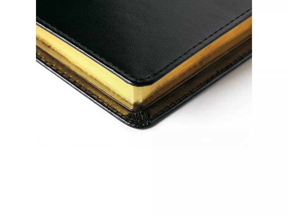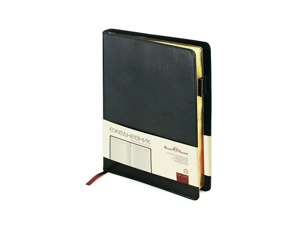 Незаменимый помощник современного профессионала – стильный и презентабельный ежедневник линии Profy. Обложка с прострочкой по периметру выполнена из натуральной рециклированной кожи и является съемной. Ежедневник формата А5 выпускается размером 143*216 мм. Полудатированный сменный блок включает 416 страниц бежевого цвета. Их закругленные уголки совпадают с формой обложки, обрез золотого цвета. Используется бумага высшего качества с плотностью 70 грамм. На 32 страницах помещена справочная информация. Последние 8 листов являются отрывными и снабжены перфорацией. Для хранения письменной принадлежности представлена специальная петля из кожи. Для быстрого перехода по страницам под обложкой находится бордовая закладка-ляссе. Поставляется в индивидуальной упаковке.