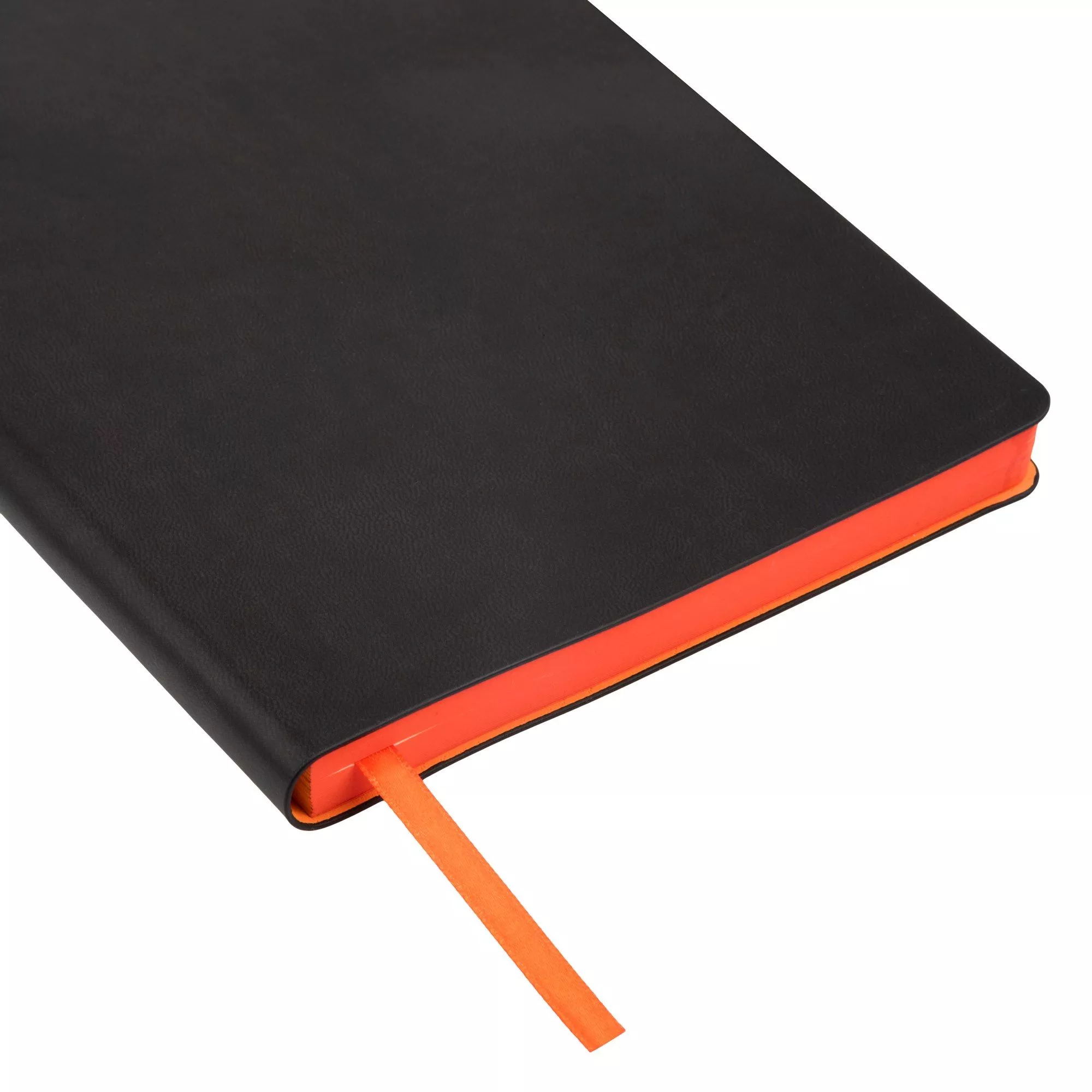 Цветовое решение ежедневника сочетает в себе брутальный черный и сочный оранжевый цвета, создавая яркий харизматичный бизнес-аксессуар. Обложка гибкая, со скругленными уголками, из мягкого, слегка прорезиненного материала, имитирующего искусственную кожу. На ощупь гладкая, с эффектом Soft Touch. Имеет мелкозернистый рисунок и легкий приглушенный блеск. Не образует заломов, не расслаивается, устойчива к повреждениям. Цвет – классический черный, насыщенный, однородный, слегка припудренный. Гармонично сочетается с динамичными оранжевыми матовыми форзацем, нахзацем и срезом, уравновешивая общую активную тональность изделия. Страницы теплые, кремовые, со скругленными уголками. Выполнены из приятного шелковистого офсета. Гладкое атласное оранжевое ляссе с легким отливом выполнено в тон форзаца. Ширина закладки 6 мм.Упаковка: пластиковая коробка - есть