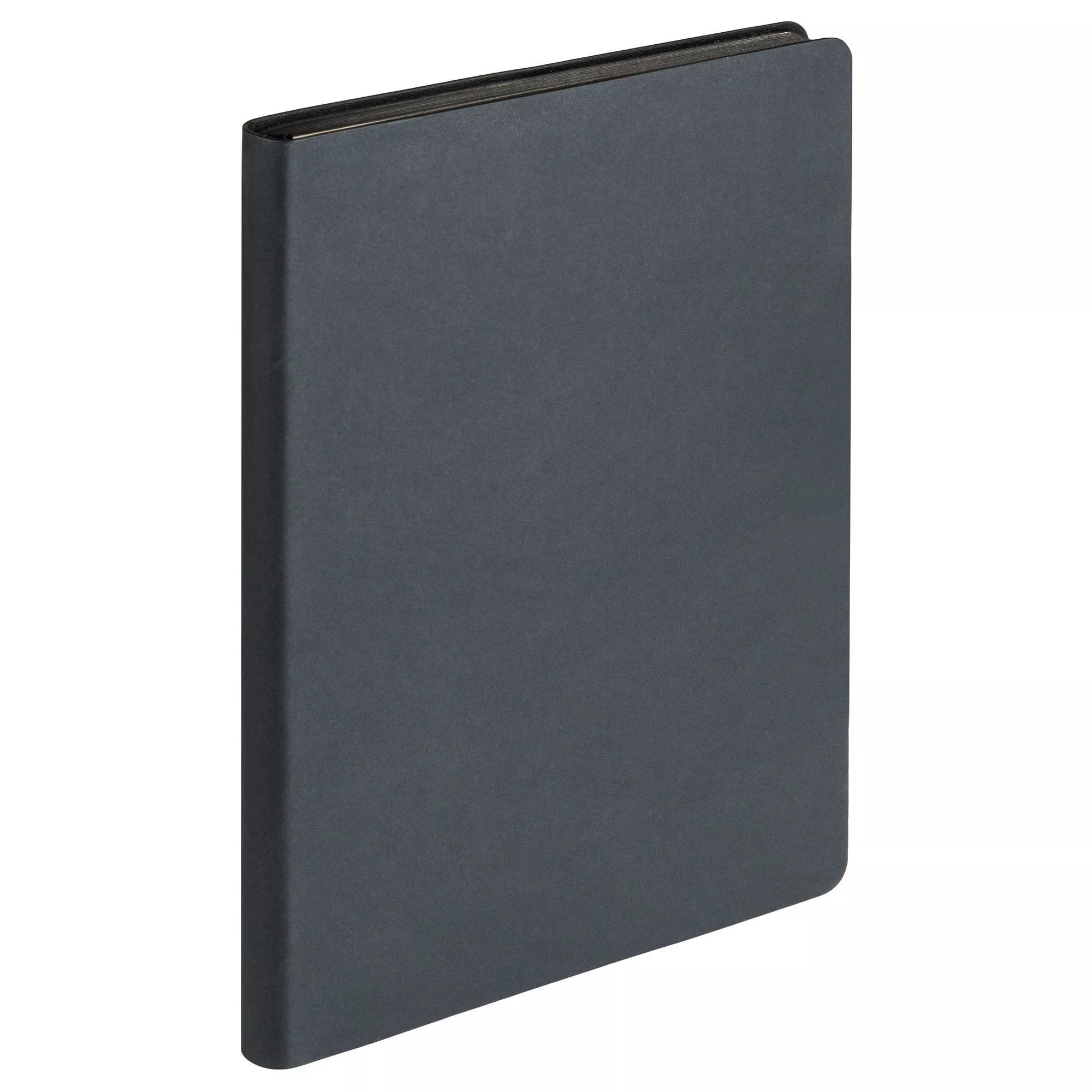 Недатированный ежедневник Portobello коллекции Moon River в брутальном образе Total Black. Гибкая обложка выполнена их качественной искусственной кожи с поверхностью Soft Touch. Поверхность матовая, с приятной шелковой однородной фактурой. Цвет – классический черный, густой, плотный, припудренный. Форзац и нахзац матовые, черные, в тон обложки. Страницы из гладкого светло-кремового офсета, шелковистые, со скругленными уголками. Ярко контрастируют с обложкой, привносят в образ изделия теплую уютную нотку. Срез матовый, черный. Двойное атласное ляссе составлено из серой и черной лент. Имеет шелковистую поверхность с легким блеском. Общая тональность этого эффектного изделия строгая, минималистичная, атмосферная.
