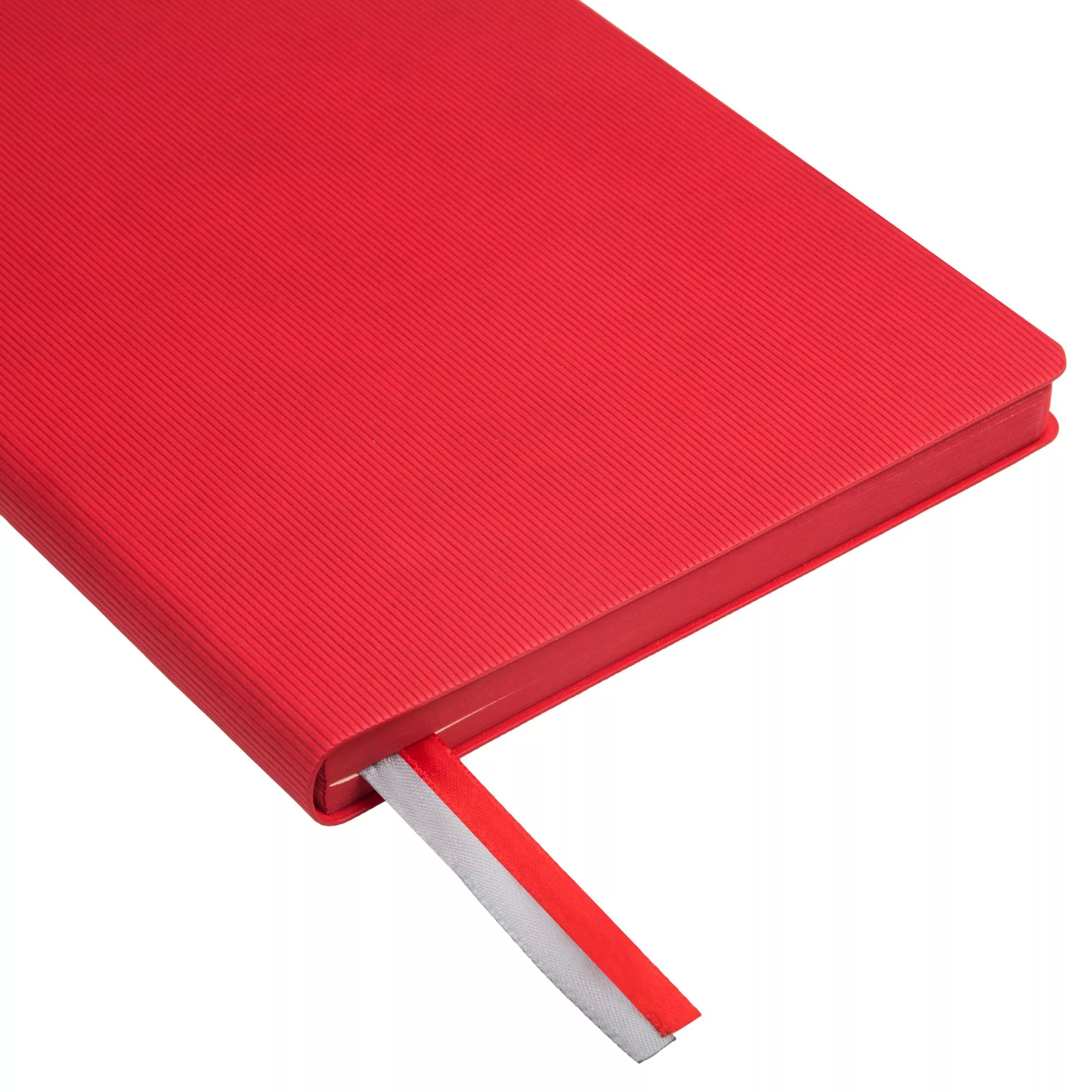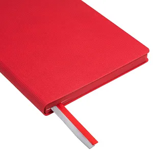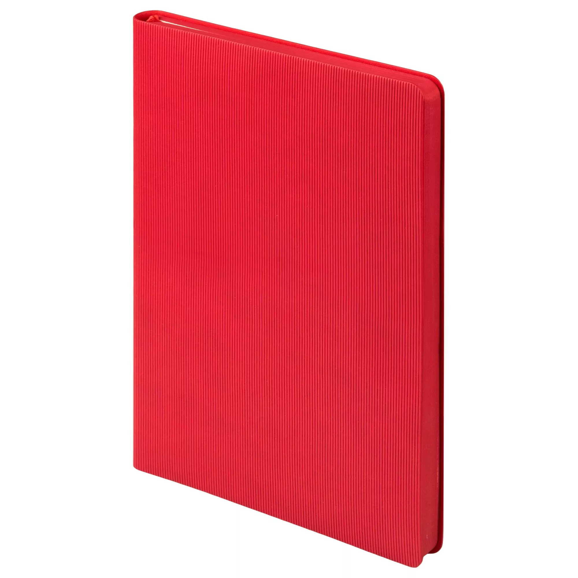 Дерзкий. Характерный. Запоминающийся. Недатированный ежедневник создан привлекать внимание и вызывать яркие эмоции. Гибкая матовая обложка со скругленными уголками выполнена из искусственной кожи, имитирующей покрытие в стиле Hi-Tech. Переплетный материал с вертикальным рифлением, бархатистый, со слегка прорезиненным эффектом. За счет интересной рельефной фактуры прослеживается игра цвета при перемене освещения. Цвет – насыщенный красный, плотный, комфортный, однородный. Создает необычный красивый контраст с матовыми форзацем и нахзацем серого цвета. Срез матовый, в тон обложки. Страницы со скругленными уголками приятного глазу теплого светло-кремового цвета. Выполнены из гладкого шелковистого офсета. Ежедневник дополнен двойным атласным ляссе из лент серого и красного цветов, имеющих глянцевый отлив.