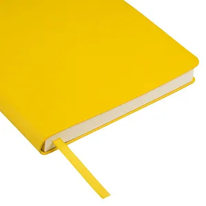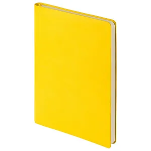 Недатированный ежедневник в оригинальном удачном цветовом решении, делающее общее впечатление от изделия ярким и гармоничным. Гибкая обложка со скругленными уголками выполнена из материала «вельвет» с чуть заметно проступающей фактурой нубука. На ощупь гладкая. Не подвержена заломам и расслоению. Цвет обложки – желтый, насыщенный, активный, динамичный. Активно контрастирует с приглушенным серым цветом матовых форзаца и нахзаца. Страницы со скругленными уголками приятного теплого светло-кремового цвета, гладкие, слегка шелковистые. Срез матовый, в тон страниц. Одинарное атласное желтое ляссе с легким глянцевым отливом создает контраст со срезом, завершая образ изделия. Ширина ляссе 6 мм