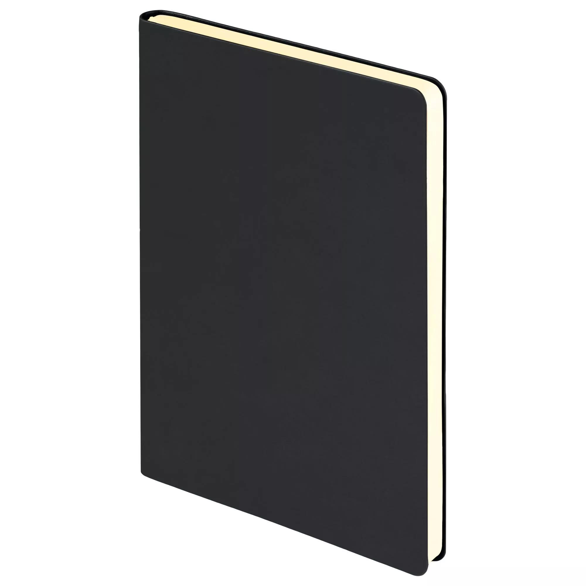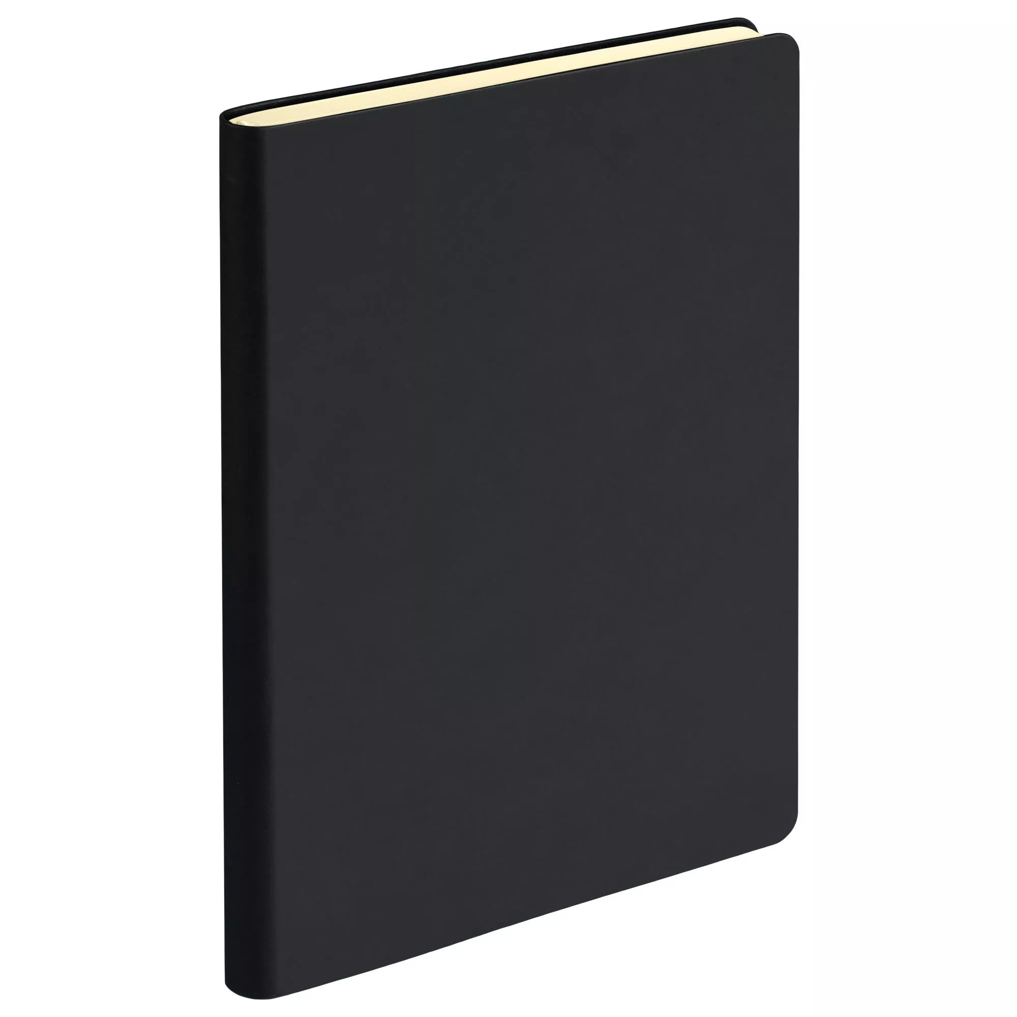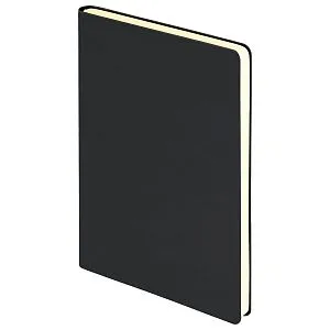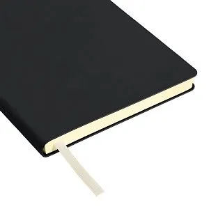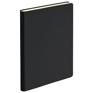 Недатированный ежедневник с гибкой матовой обложкой из качественной искусственной кожи со скругленными уголками. Покрытие с эффектом Soft Touch, гладкое, матовое, слегка припудренное, не блестит. Очень приятное на ощупь. Обложка не образует заломов, не расслаивается. Цвет – классический черный, глубокий, плотный, однородный. Форзац, нахзац и срез матовые, теплого кремового цвета. Страницы со скругленными уголками из гладкого шелковистого офсета, кремовые. Одинарное атласное кремовое ляссе с легким блеском. Ширина ляссе 6 мм. Общее настроение изделия строгое, официальное, лаконичное.Упаковка: нет
