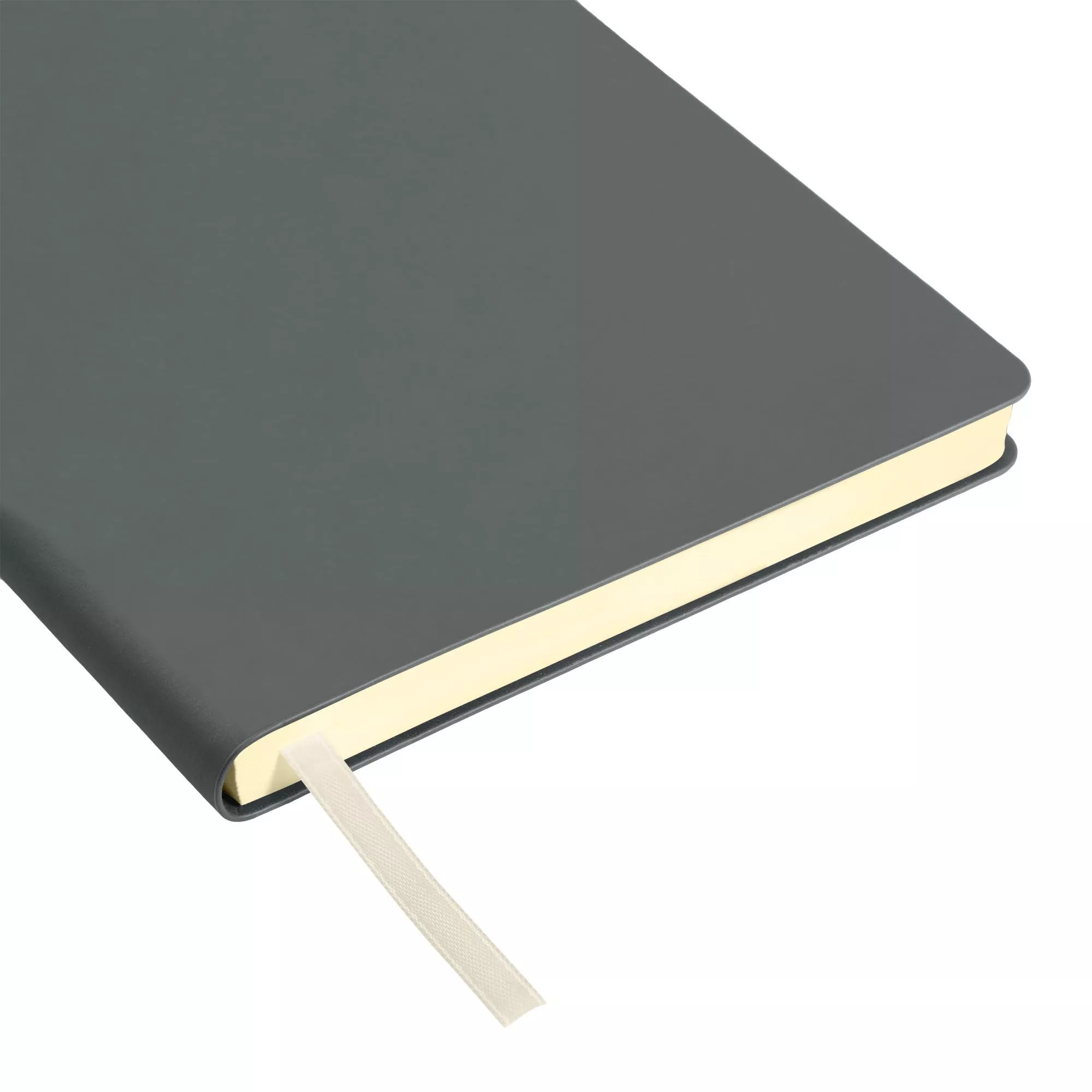 Стильный, лаконичный, самодостаточный. Недатированный ежедневник в спокойной деловой тональности. Гибкая обложка из качественной искусственной кожи со скругленными уголками. Покрытие с эффектом Soft Touch, гладкое, матовое, слегка припудренное, не блестит. Очень приятное на ощупь. Обложка не образует заломов, не расслаивается. Цвет – серый, насыщенный, плотный, однородный. Форзац, нахзац и срез матовые, теплого кремового цвета. Страницы со скругленными уголками из гладкого шелковистого офсета, кремовые. Одинарное атласное кремовое ляссе с легким блеском. Ширина ляссе 6 мм.Изделие имеет сертификаты FSC, OEKO Tex, SA8000, ISO9001.Упаковка: нет