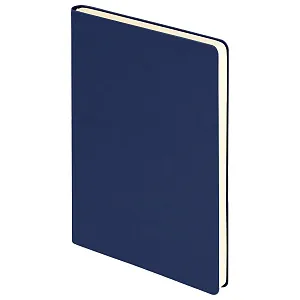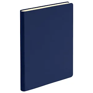 Недатированный ежедневник в стильной контрастной деловой тональности. Гибкая обложка из качественной искусственной кожи со скругленными уголками. Покрытие с эффектом Soft Touch, гладкое, матовое, слегка припудренное, не блестит. Очень приятное на ощупь. Обложка не образует заломов, не расслаивается. Цвет – синий, насыщенный, плотный, однородный. Форзац, нахзац и срез матовые, теплого кремового цвета. Страницы со скругленными уголками из гладкого шелковистого офсета, кремовые. Одинарное атласное кремовое ляссе с легким блеском. Ширина ляссе 6 мм.Упаковка: нет