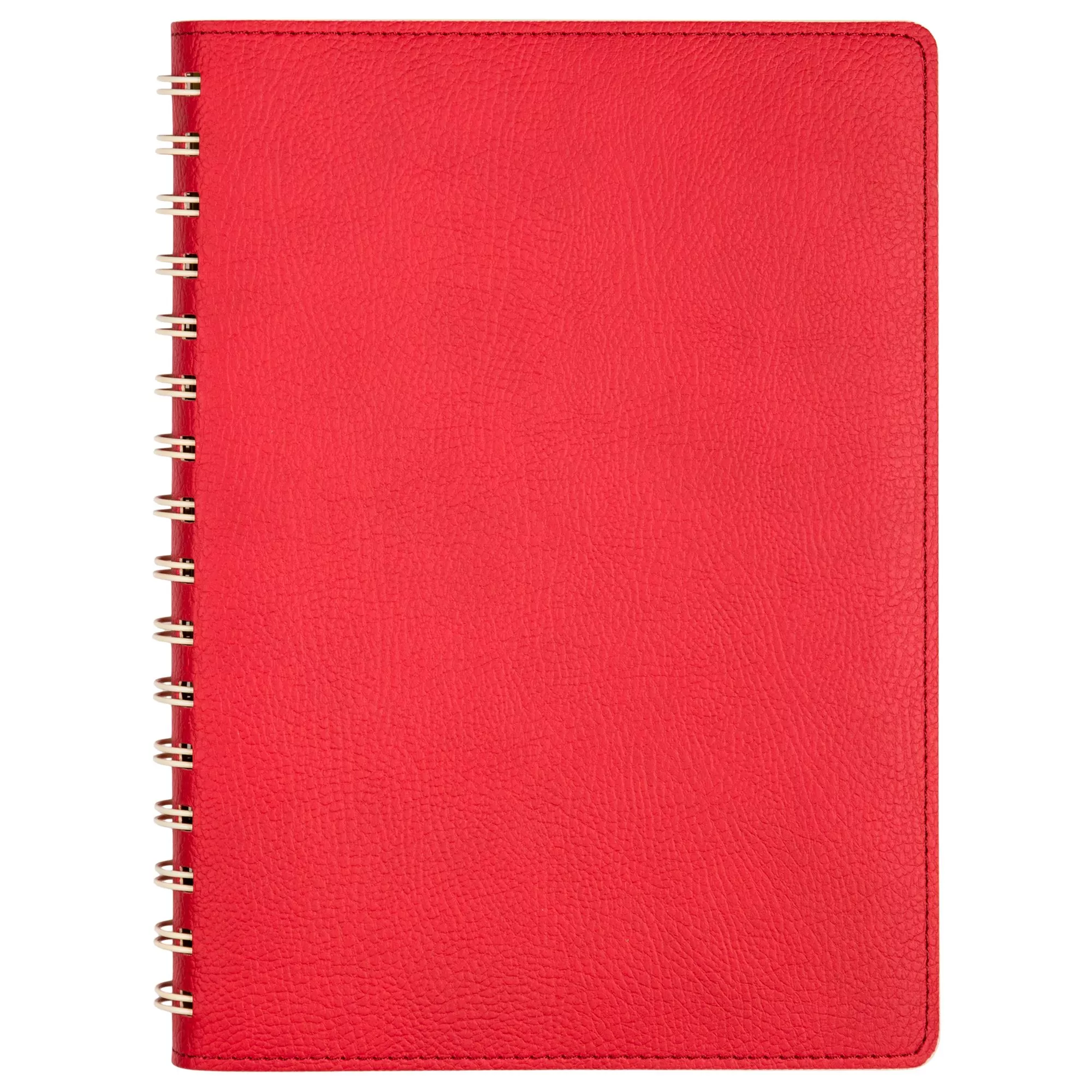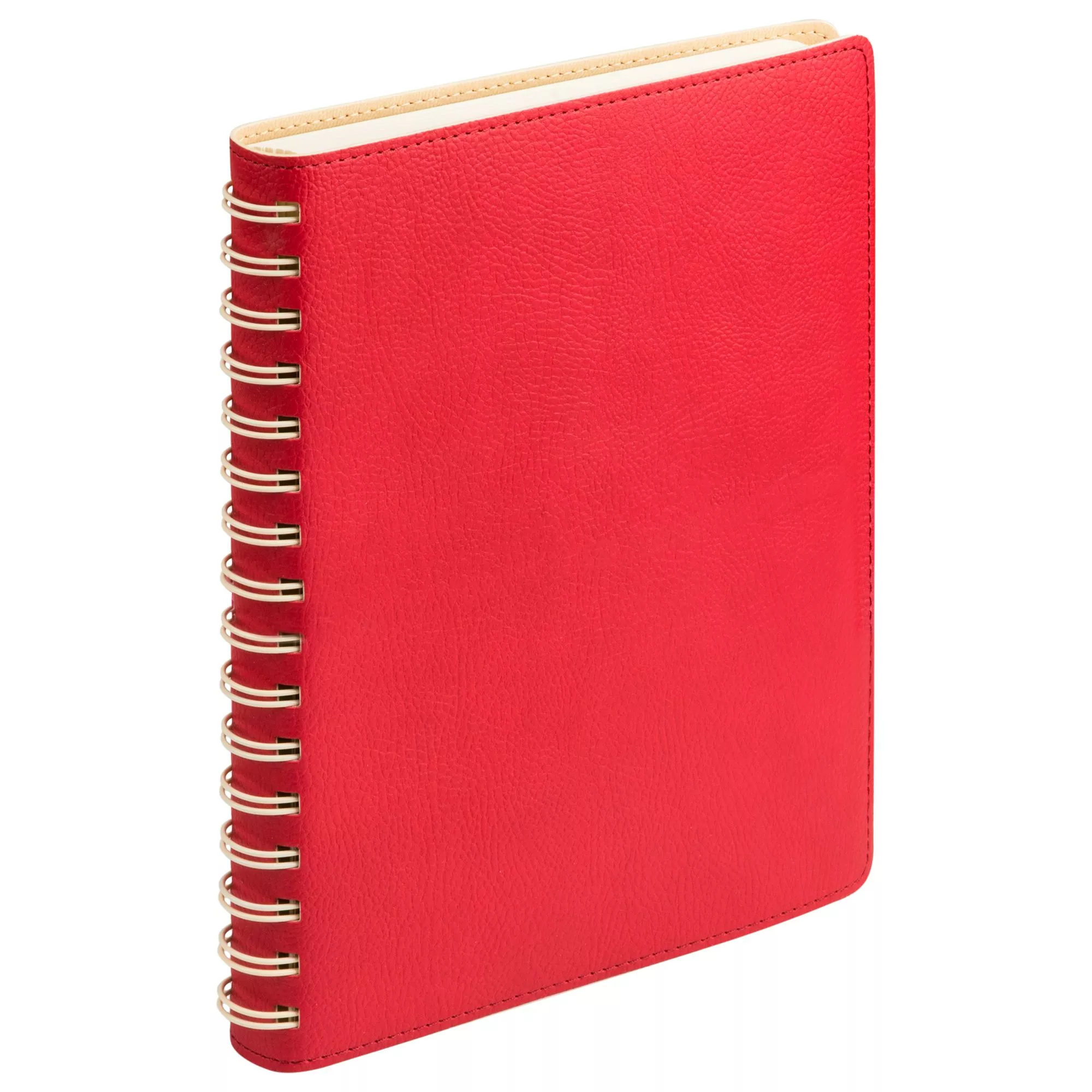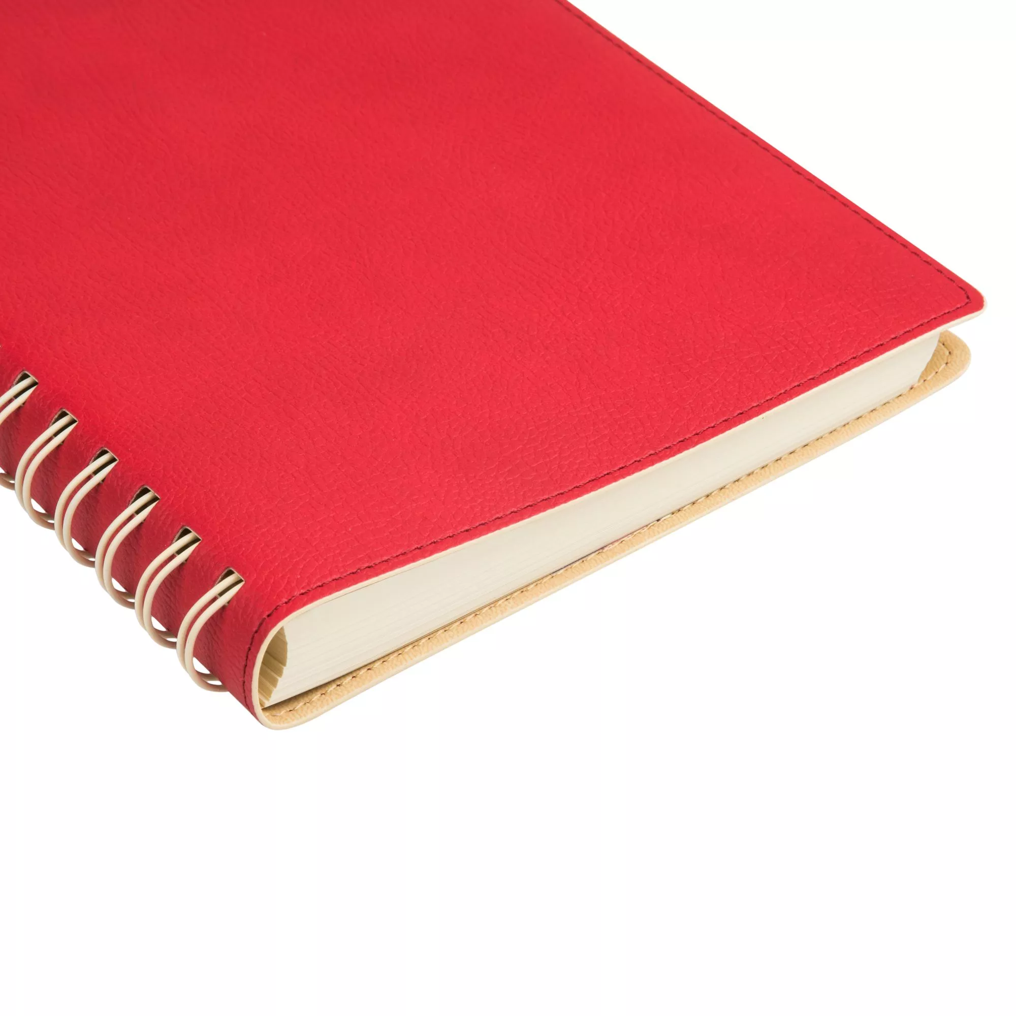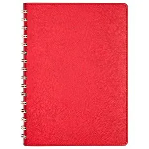 Недатированный ежедневник в гибкой обложке со скругленными уголками из искусственной кожи. Обложка выполнена из сшивки двух материалов. Внешний материал обложки матовый, с некрупным рельефом под натуральную кожу. Цвет – яркий красный, однородный. Внутренний материал обложки – Latte – бархатистый, мелкозернистый, однородного светло-бежевого цвета. По периметру обложки выполнена прошивка в тон. Форзац и нахзац контрастные, бежевые. Теплые кремовые страницы со скругленными уголками выполнены из гладкого шелковистого офсета. Срез матовый, в тон страниц. Ежедневник надежно скреплен полускрытой пружиной в цвет внутреннего материала обложки. Изделие комплектуется вкладышем с цветными стикерами и индивидуальной упаковкой.Упаковка: пластиковая коробка – есть