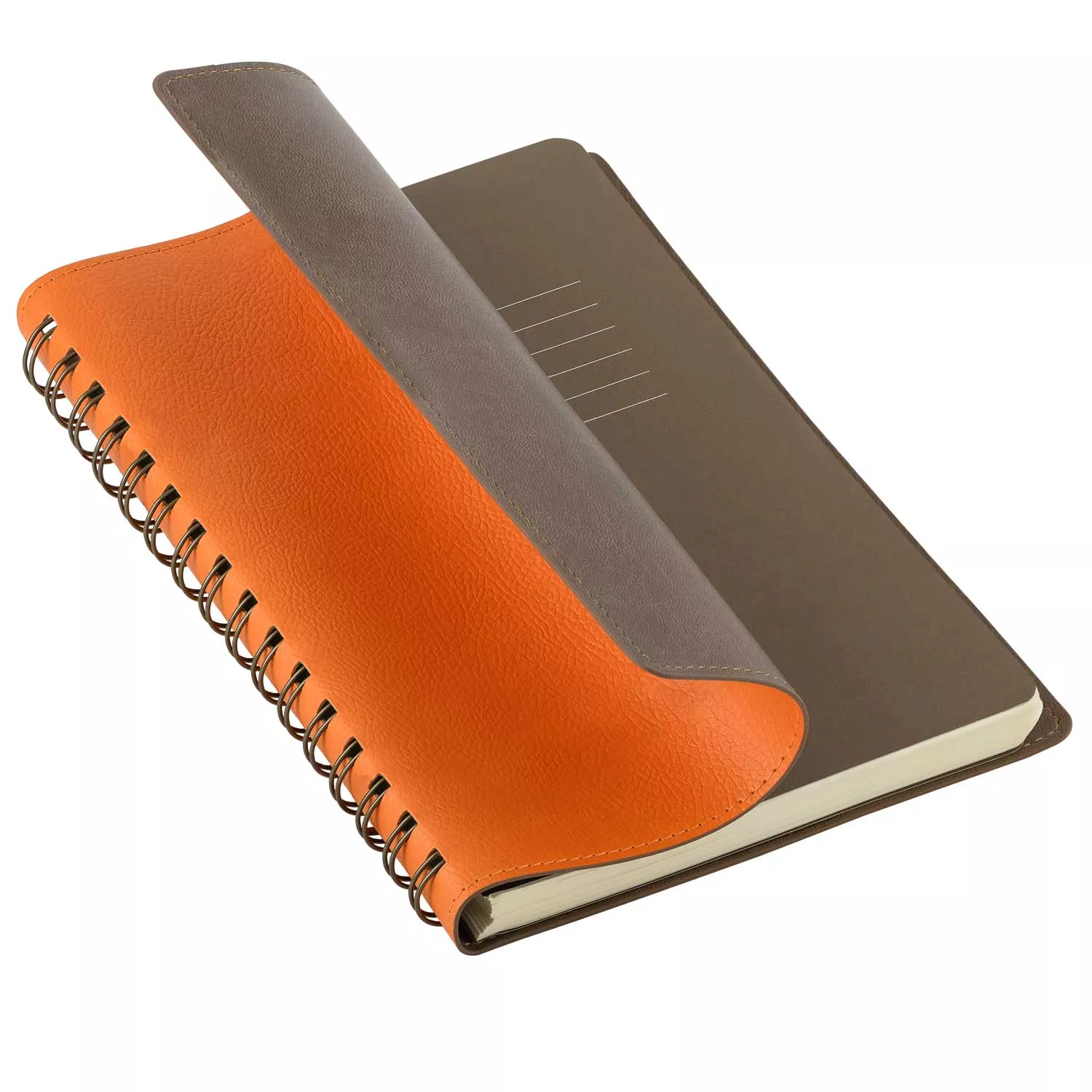 Недатированный ежедневник в гибкой обложке со скругленными уголками из искусственной кожи. Обложка выполнена из сшивки двух материалов. Внешний материал обложки – матовый, с некрупным рельефом под натуральную кожу. Цвет – сочный оранжевый, насыщенный, динамичный, однородный. Внутренний материал обложки – Latte – бархатистый, мелкозернистый, однородного коричневого цвета. По периметру обложки выполнена прошивка в тон. Форзац и нахзац контрастные, коричневого цвета. Телпые кремовые страницы со скругленными уголками выполнены из гладкого шелковистого офсета. Срез матовый, в тон страниц. Ежедневник надежно скреплен полускрытой пружиной в цвет внутреннего материала обложки. Изделие комплектуется вкладышем с цветными стикерами и индивидуальной упаковкой.Упаковка: пластиковая коробка - есть