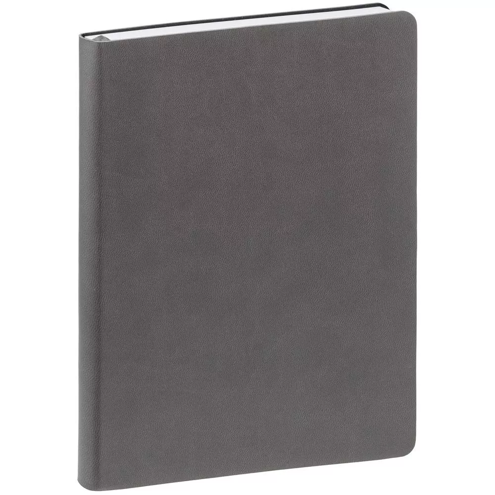 Ежедневник с гибкой обложкой, выполнен из материала Latte, серый, дополнен ляссе в цвет обложки.