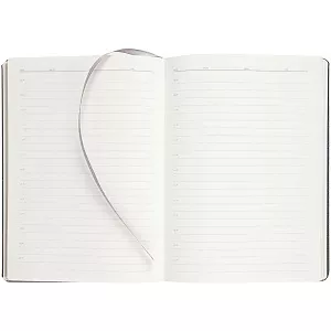 Ежедневник с твердой обложкой и серебристым обрезом, выполнен из материала Saffian, синий НН, дополнен ляссе в цвет обложки.