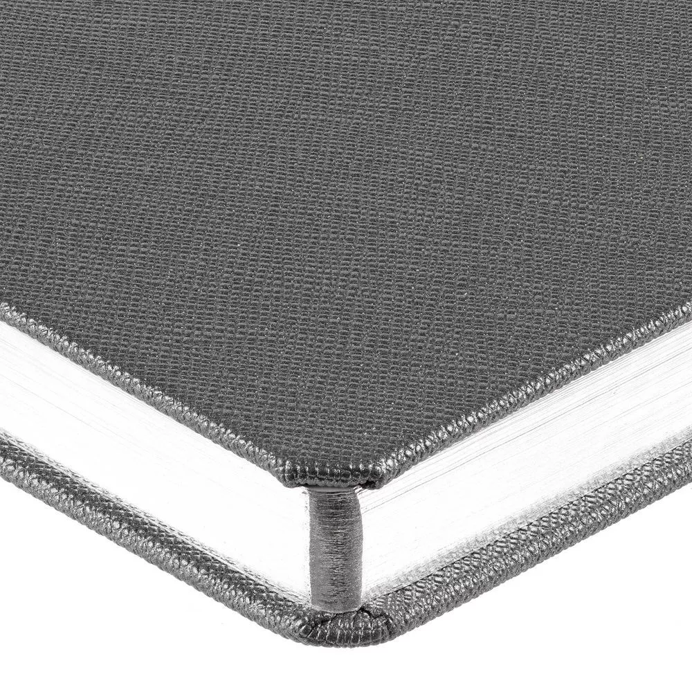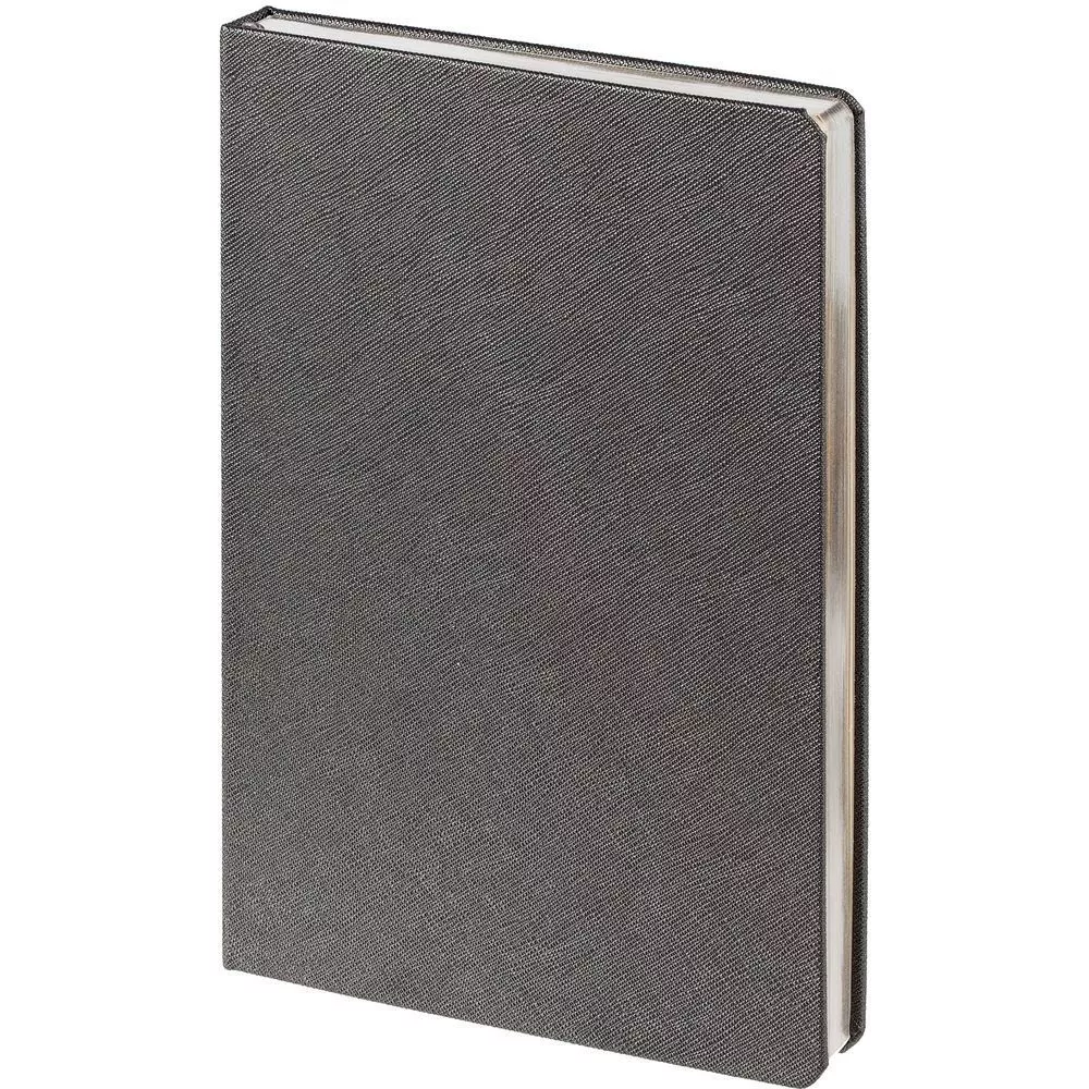 Ежедневник с твердой обложкой и серебристым обрезом, выполнен из материала Saffian, синий НН, дополнен ляссе в цвет обложки.