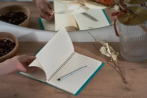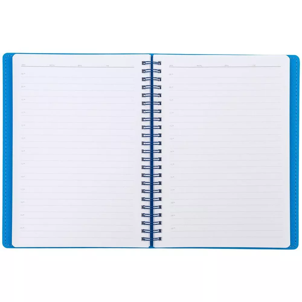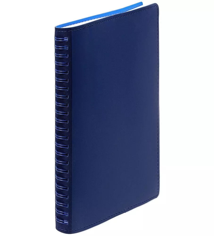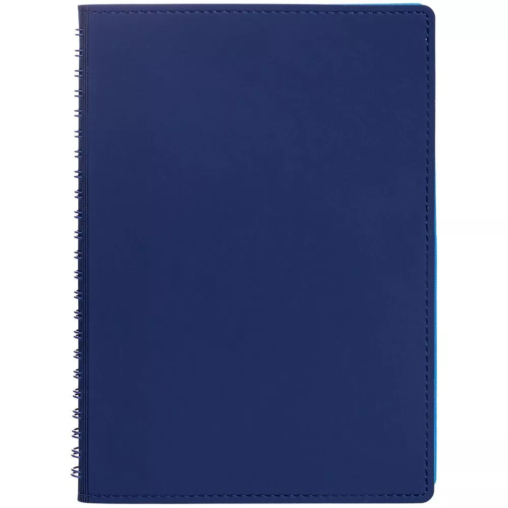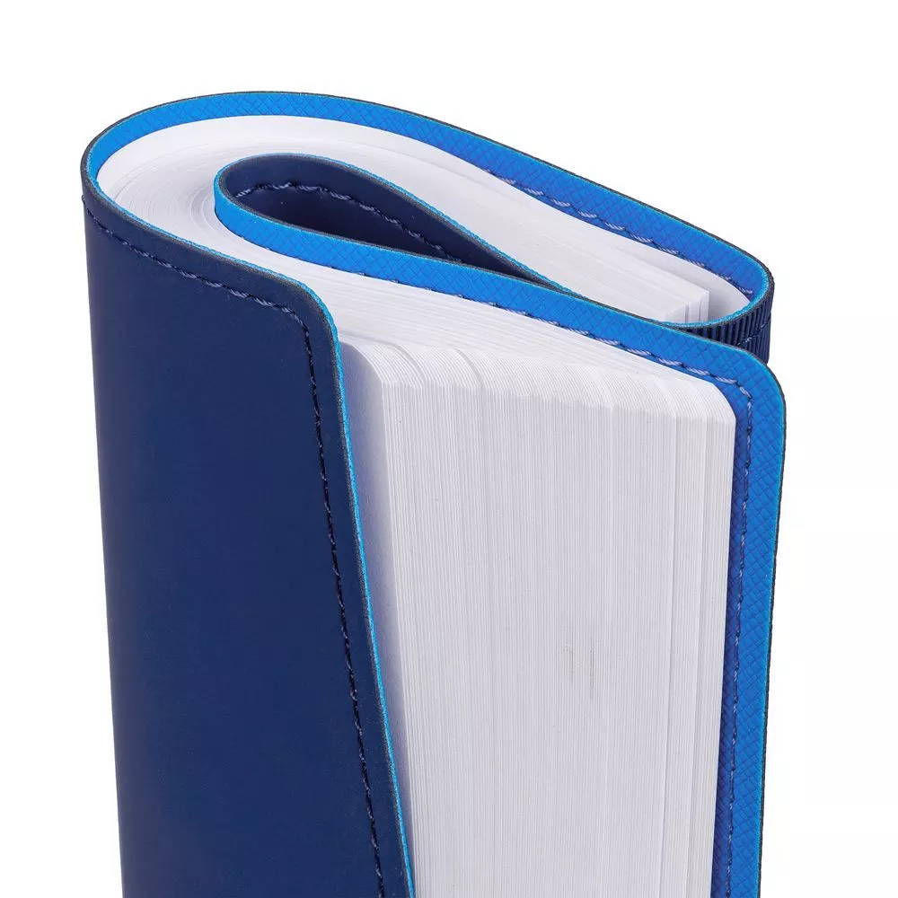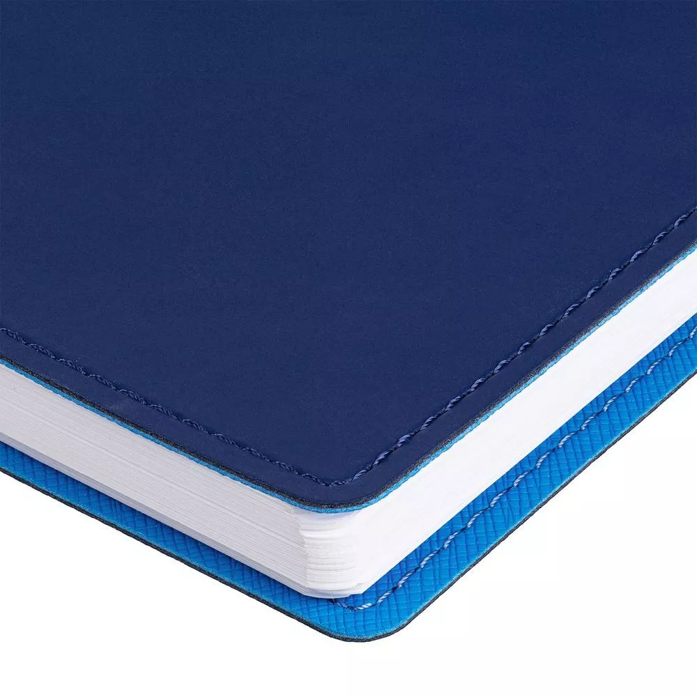 Ежедневник с гибкой обложкой, выполнен из материалов Soft Touch, синий и Nice Touch, голубой.