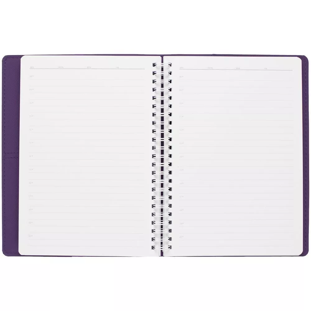 Ежедневник с твердой обложкой, выполнен из материалов Nice Touch, фиолетовый UU и Soft Touch серый, СС и фиолетовый.