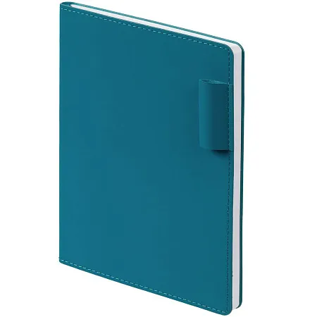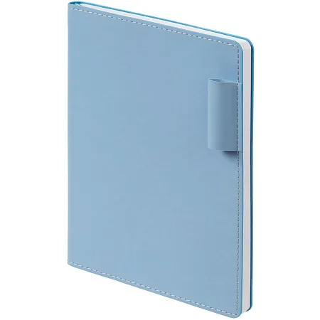 Ежедневник с гибкой обложкой, выполнен из материала Soft Touch Ultra, синий НН, дополнен петелькой для ручки из покровного материала, капталом и ляссе синего цвета.