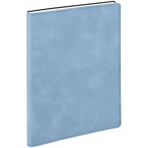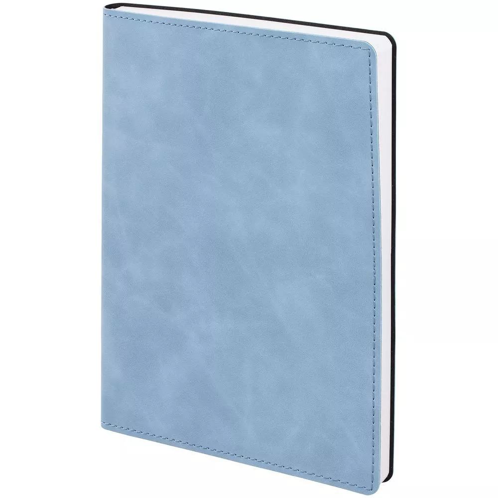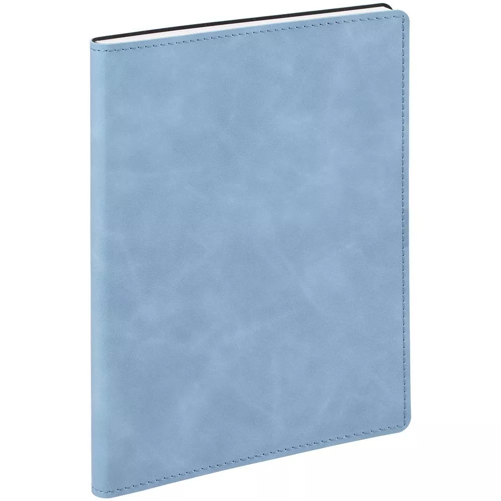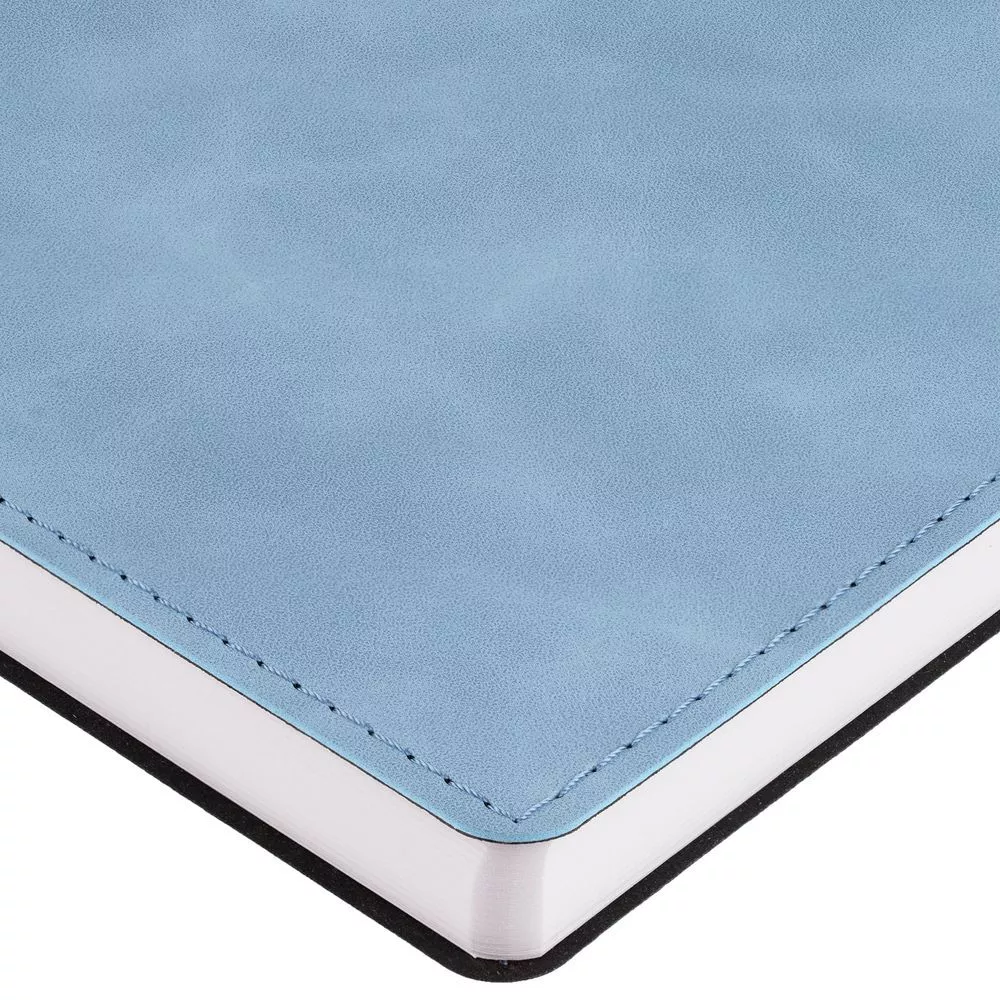 Ежедневник в клетку, с гибкой обложкой, выполнен из материала Nubuck Touch, голубой JJ, дополнен ляссе светло-голубого цвета.