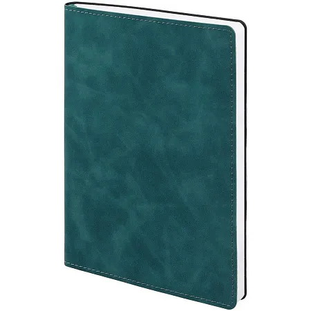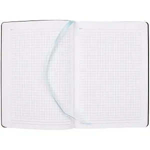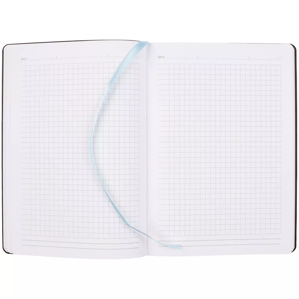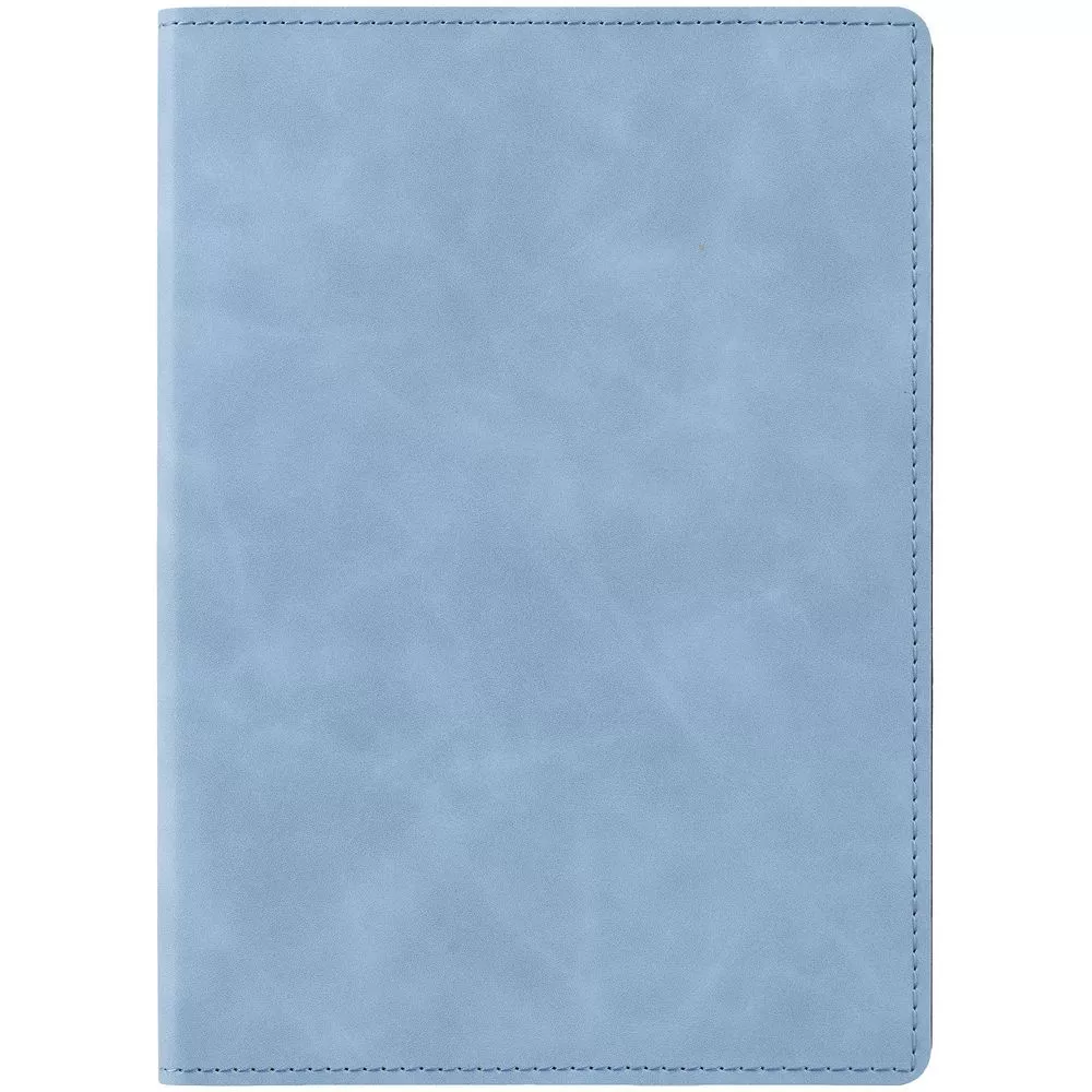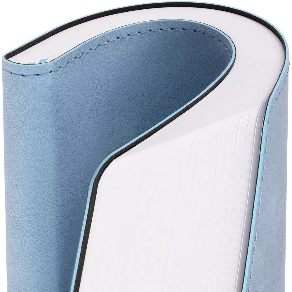Ежедневник в клетку, с гибкой обложкой, выполнен из материала Nubuck Touch, голубой JJ, дополнен ляссе светло-голубого цвета.