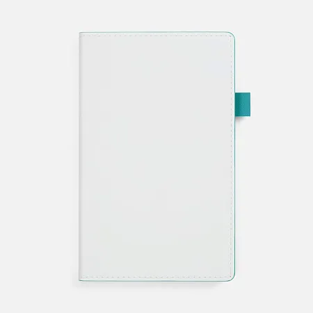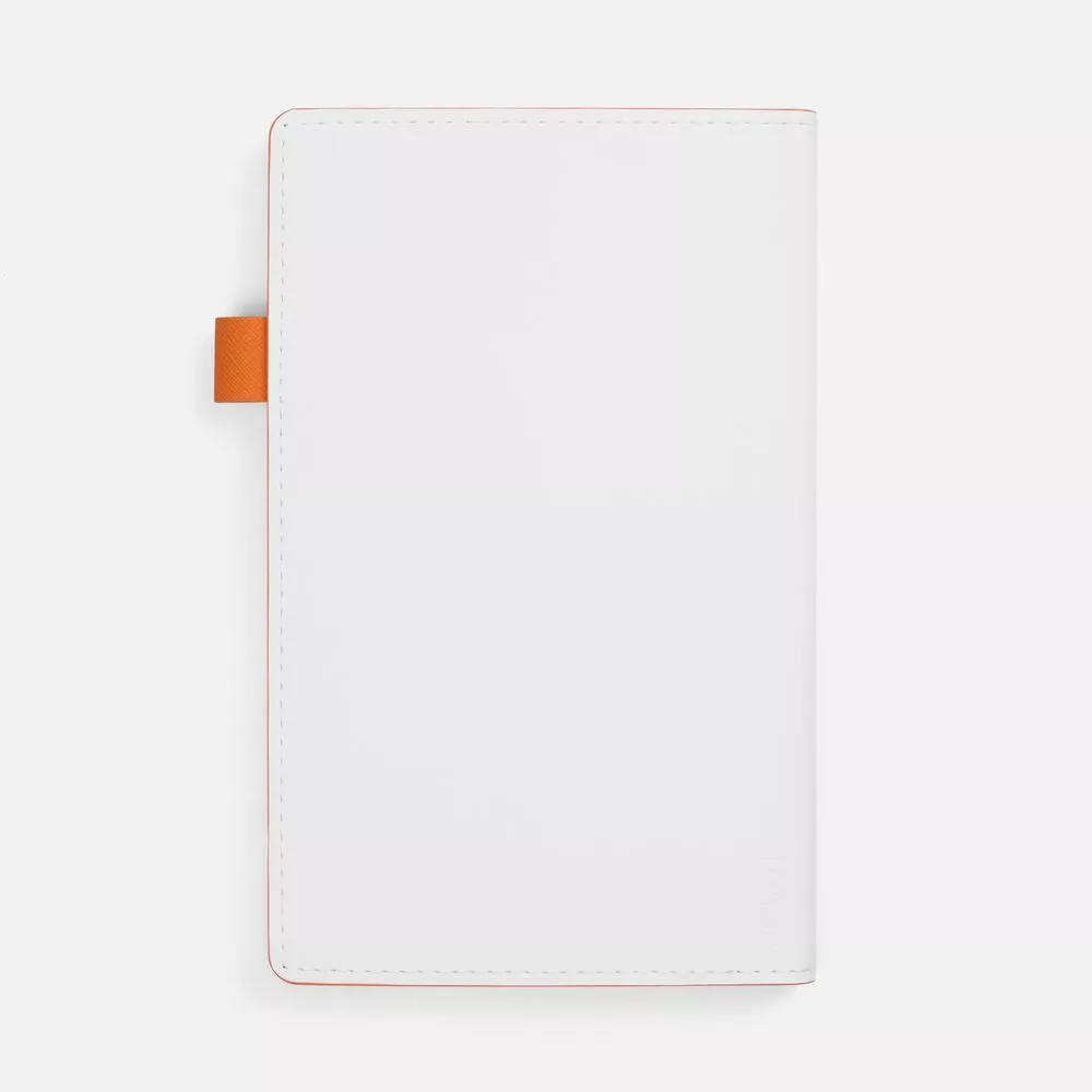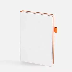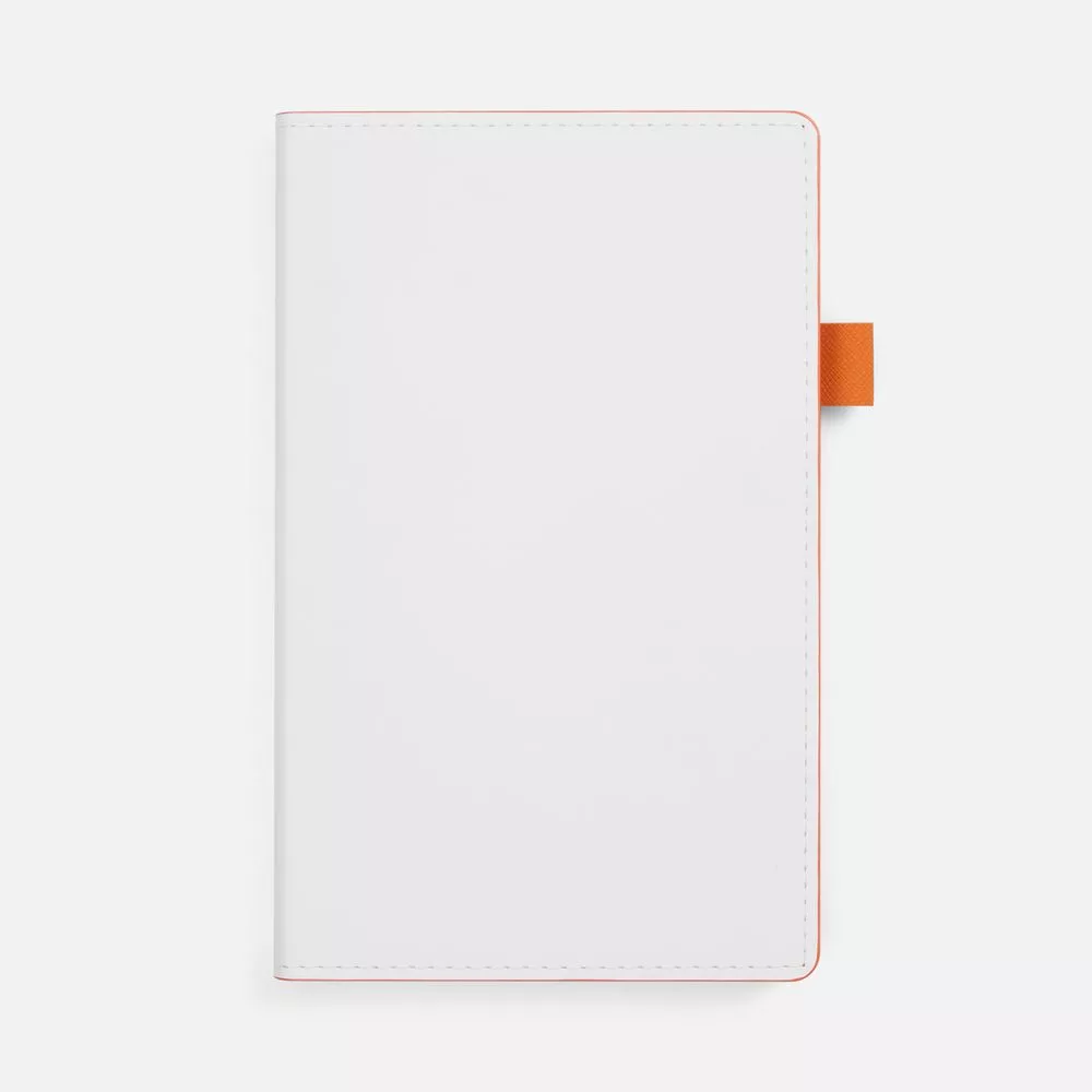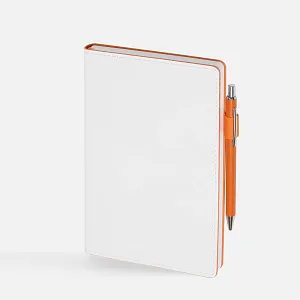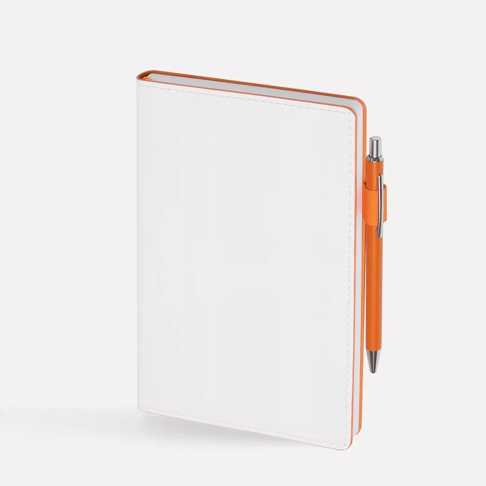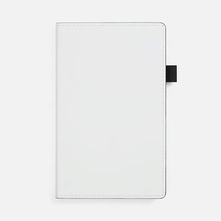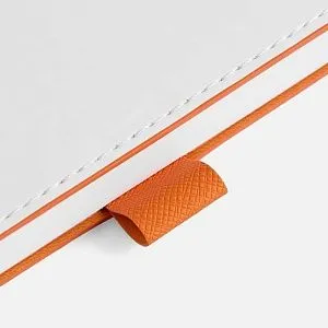 Гибкая обложка, материал обложки — Soft Touch, белый BB и красный РР; материал петли для ручки — Nice Touch, красный РР. ОО.