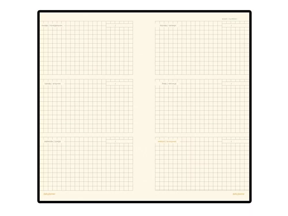 Удобный практичный недатированный еженедельник в мягкой обложке из прочного переплетного материала. Контрастная прострочка белыми нитками по периметру привлекает внимание к изящной форме обложки с закругленными уголками. Обложка украшена металлическим шильдиком. Линовка блока - клетка, с указанием дней недели. Карманный формат этого еженедельника позволяет эффективно вести записи на выездных совещаниях, переговорах и встречах. Готов к персонализации.
