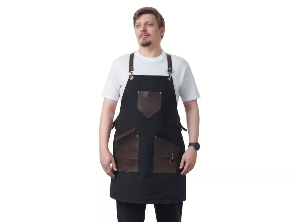 Фартук из канваса с ремнями из натуральной кожи – ваш надежный помощник на кухне и в творчестве! Ищете идеальный фартук, который объединит стиль, практичность и долговечность? Представляем вам наш фартук из смесового канваса с ремнями и карманами из натуральной кожи КРС. Это сочетание материалов обеспечивает не только элегантный внешний вид, но и надежную защиту от загрязнений. Преимущества: - Высококачественный материал: Канвас плотностью 450 гр/м2 делает фартук прочным и долговечным. Хлопок с водоотталкивающей пропиткой защищает от пятен и легко чистится, что особенно важно на кухне. - Натуральная кожа: Ремни из натуральной кожи КРС обеспечивают надежную фиксацию и комфорт в носке. Они не только стильные, но и износостойкие, что гарантирует долгий срок службы. - Эстетика и стиль: Черный цвет фартука в сочетании с коричневыми ремнями и карманами создает стильный и современный образ. Этот фартук подойдет как для профессиональной, так и для домашней кухни, а также для барбекю и других активных хобби. - Функциональность: Удобные карманы позволят хранить необходимые инструменты под рукой, а надежная фурнитура из сплава металлов обеспечивает прочность и долговечность конструкции. Этот фартук – идеальный выбор для кулинаров, художников, садоводов или мастеров по дереву. Он станет отличным подарком для друзей и близких, которые ценят качество и стиль. Не упустите шанс добавить в свою жизнь функциональность и стиль! Закажите фартук из канваса уже сегодня!