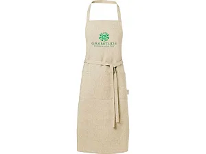 Фартук из смеси переработанного хлопка и полиэстера плотностью 200 г/м². Имеет два смежных кармана общим размером 45 x 20 см и завязку на спине длиной 1 метр. Вторичный хлопок изготавливается из отходов, предназначенных для потребления, которые производятся текстильными фабриками в процессе резки. Из-за особенностей переработанного хлопка возможно незначительное несоответствие цвета. Благодаря этому внешний вид выглядит более аутентичным. Длина шейного ремешка: 55 см. 100% переработанный хлопок, 200 g/m2, 100% переработанный полиэстер.
