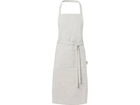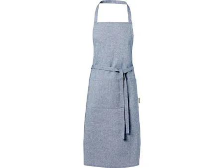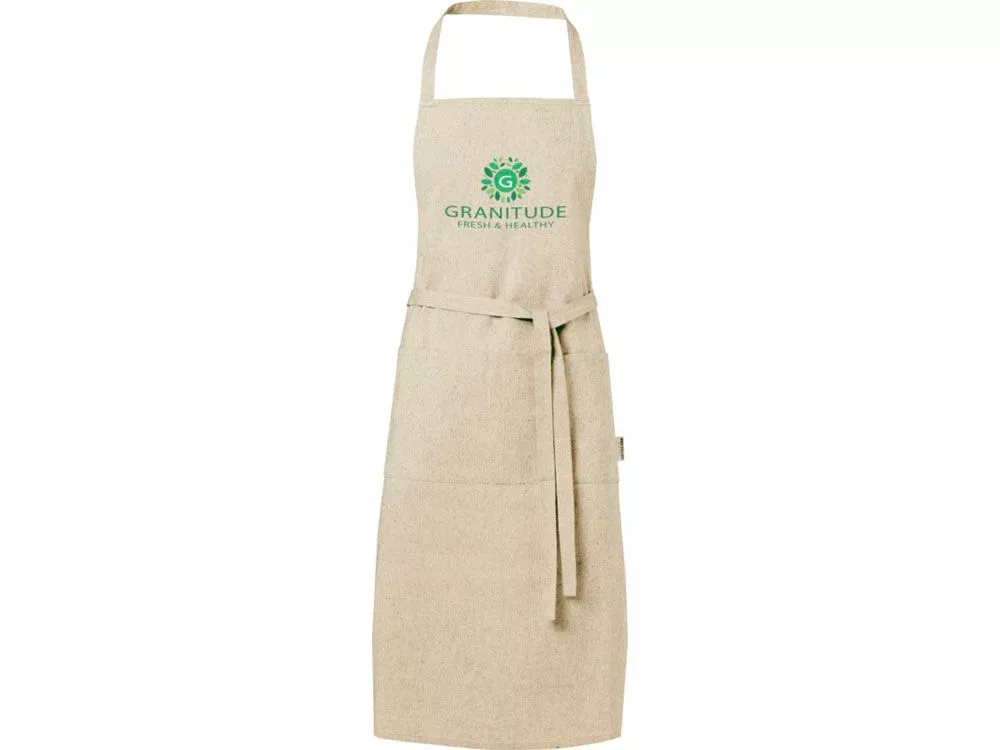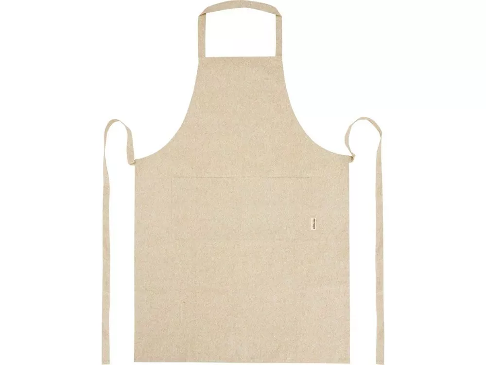 Фартук из смеси переработанного хлопка и полиэстера плотностью 200 г/м². Имеет два смежных кармана общим размером 45 x 20 см и завязку на спине длиной 1 метр. Вторичный хлопок изготавливается из отходов, предназначенных для потребления, которые производятся текстильными фабриками в процессе резки. Из-за особенностей переработанного хлопка возможно незначительное несоответствие цвета. Благодаря этому внешний вид выглядит более аутентичным. Длина шейного ремешка: 55 см. 100% переработанный хлопок, 200 g/m2, 100% переработанный полиэстер.
