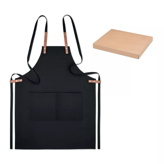 Кухонный фартук с 2 передними карманами из органического хлопка плотностью 340 г / м². Сертификация GOTS . Изготовлен по стандарту OEKO-TEX. Поставляется в индивидуальной коробке