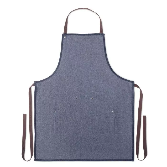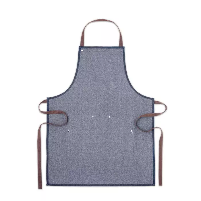 Регулируемый кухонный фартук с 3 передними карманами из денима плотностью 240 г / м² с хлопковыми бретелями. Поставляется в индивидуальной коробке.
