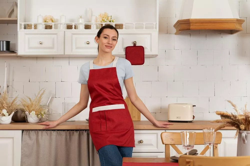 Износостойкая ткань, имитирующая лен, обработана пропиткой от грязи и воды, что делает ее применение для кухни и дома практичным, а уход легким.